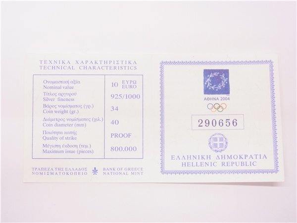 ◎ 記念コイン ◎ 2004年 アテネリンピック 【サッカー】 10ユーロ プルーフ 銀貨 シルバー925 ケース入り ◎美品