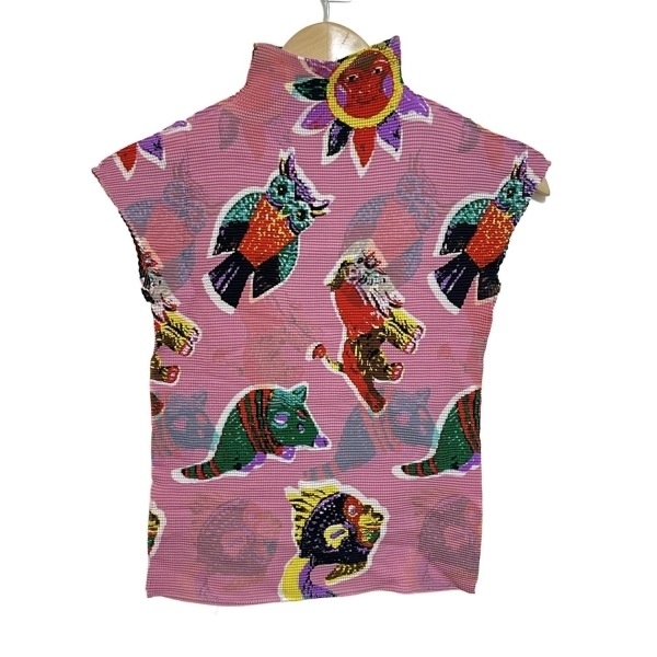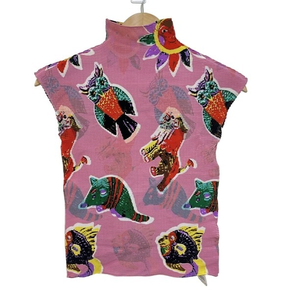 ミー/イッセイミヤケ me ISSEY MIYAKE 半袖カットソー - ピンク×レッド×マルチ レディース ハイネック/プリーツ トップス
