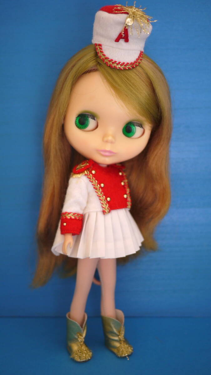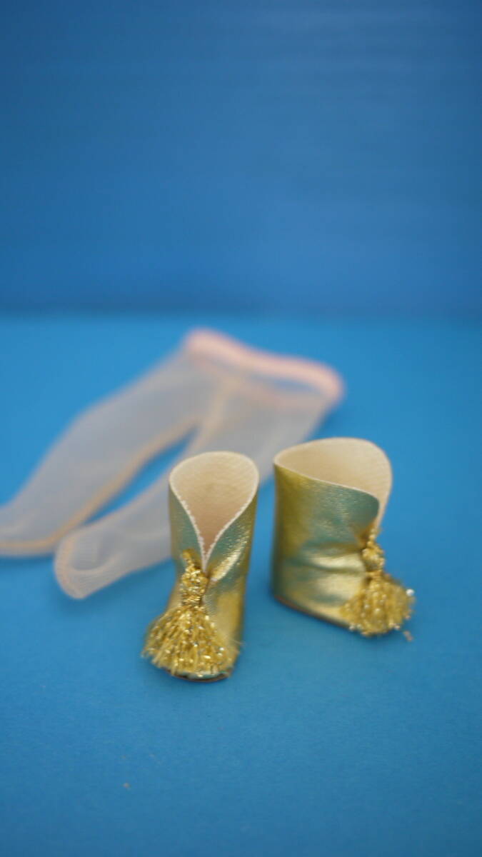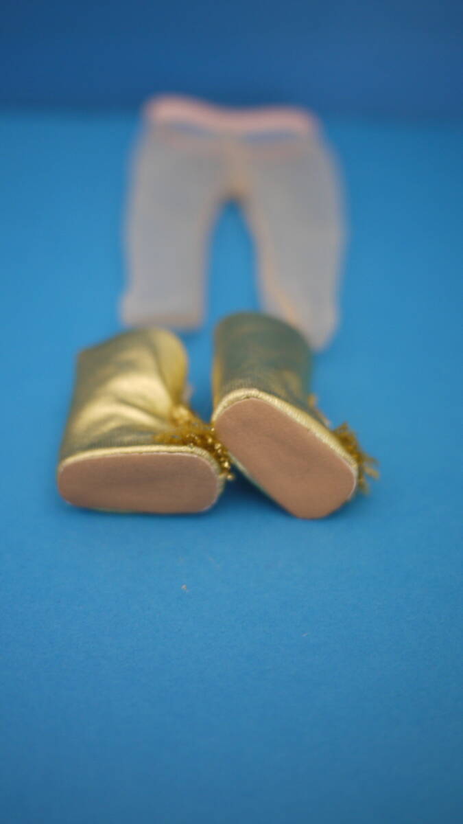 ブーツはブライスには大きいですがブーツなので大きめで良いと思います。ストッキングはブライスには股下が短いので伸ばしてウエストで輪ゴムを二重にして履かせています。モデルのブライスはヴィンテージ(エクセレント)ボディです。