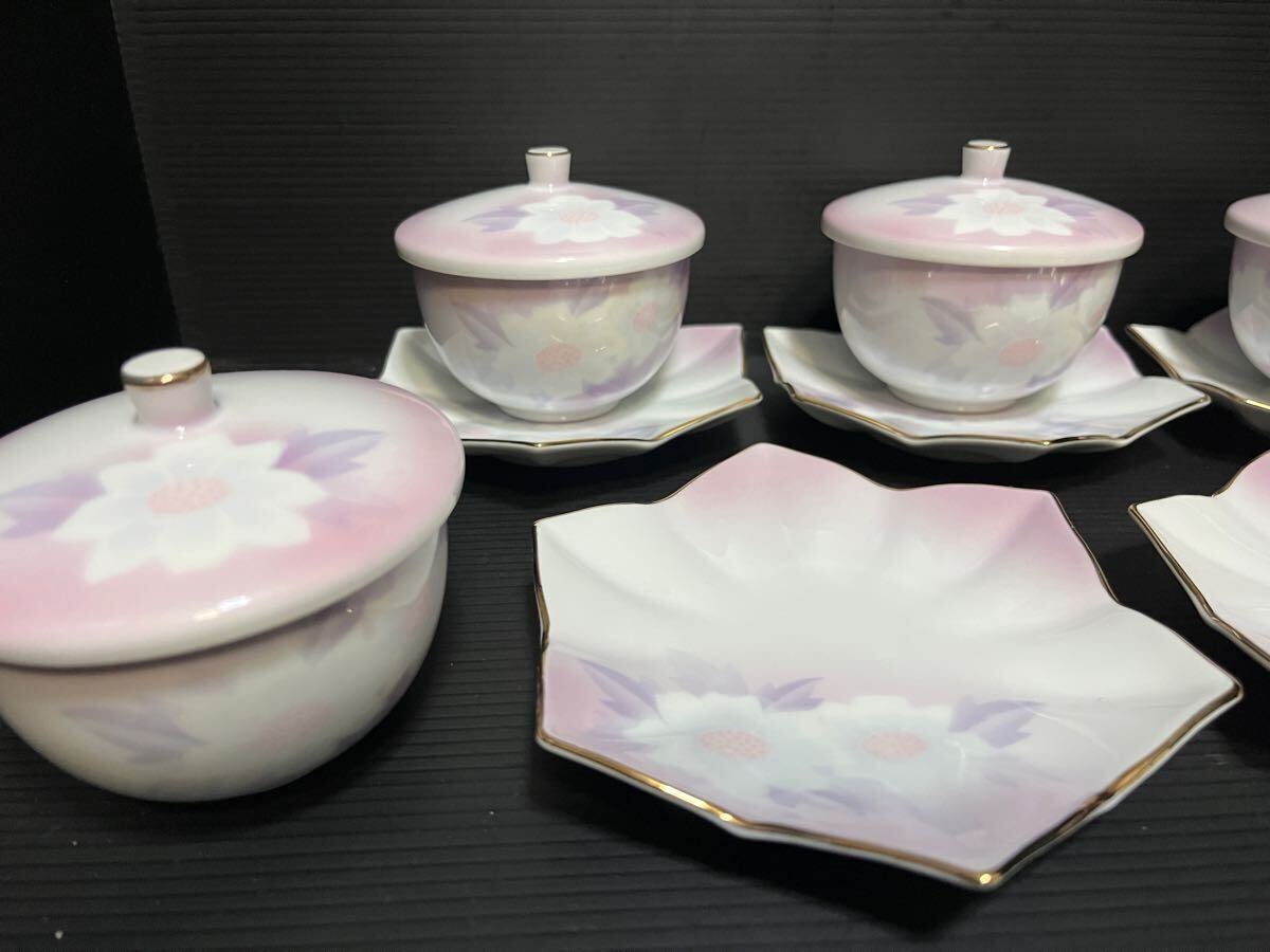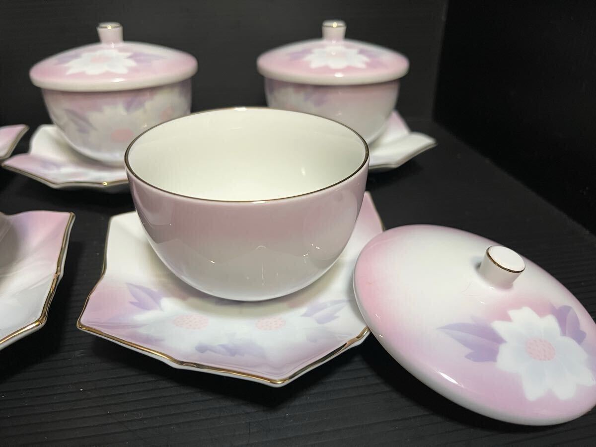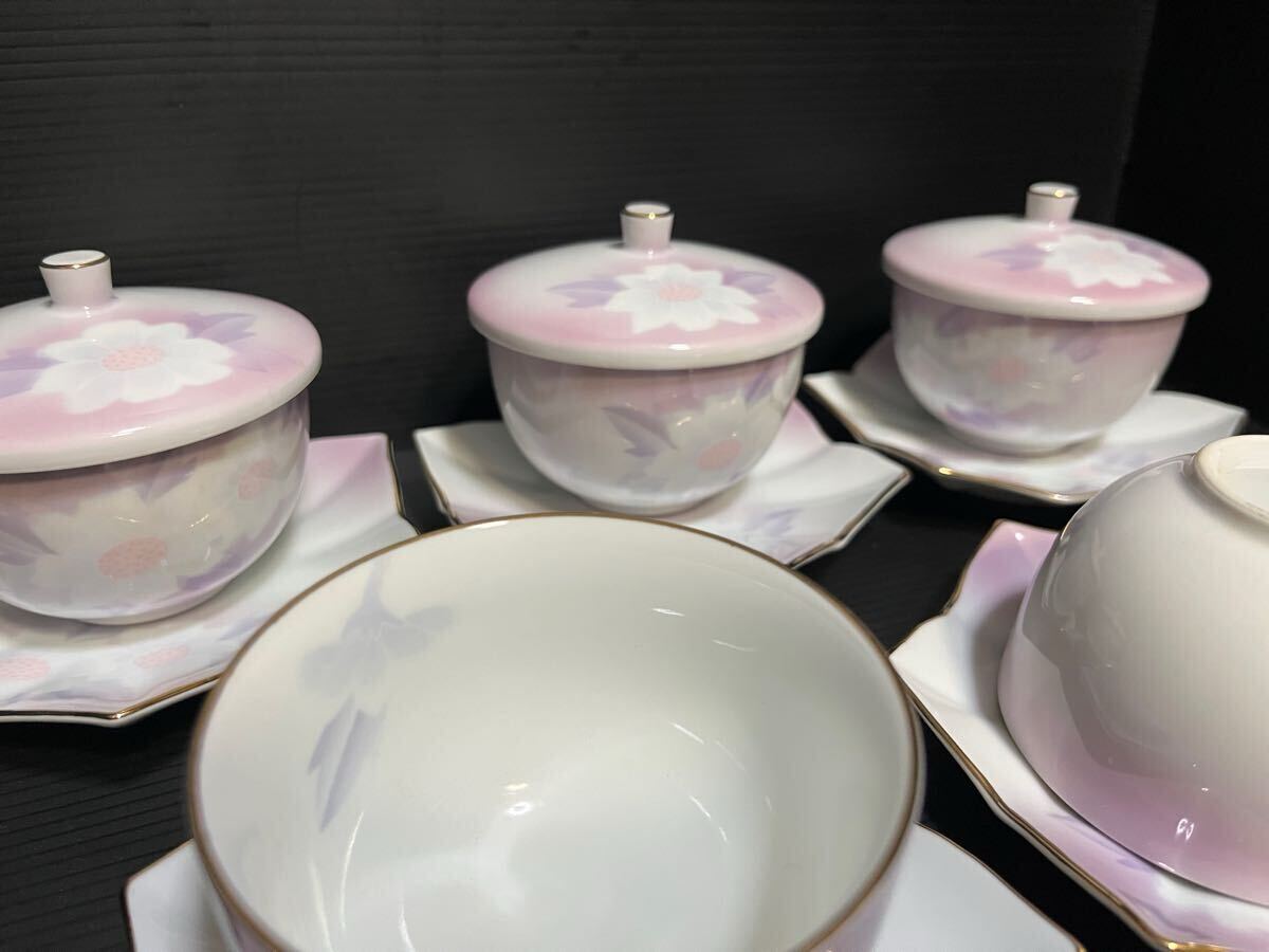 未使用 有田焼 雅峯 蓋付き湯呑 薄紫 5客セット