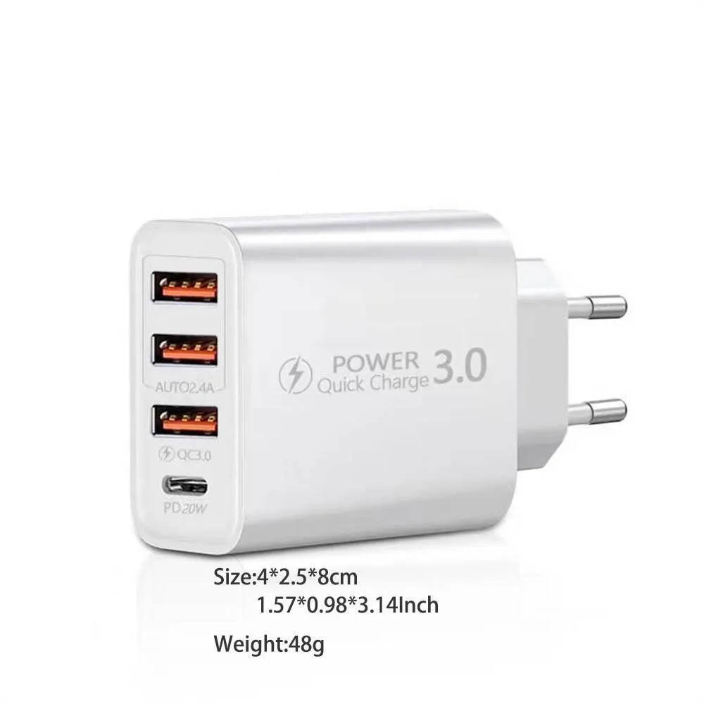 USB充電アダプター USB Type-A 3ポート / PD Type-C 1ポート (Quick Charge 3.0 対応) ブラック