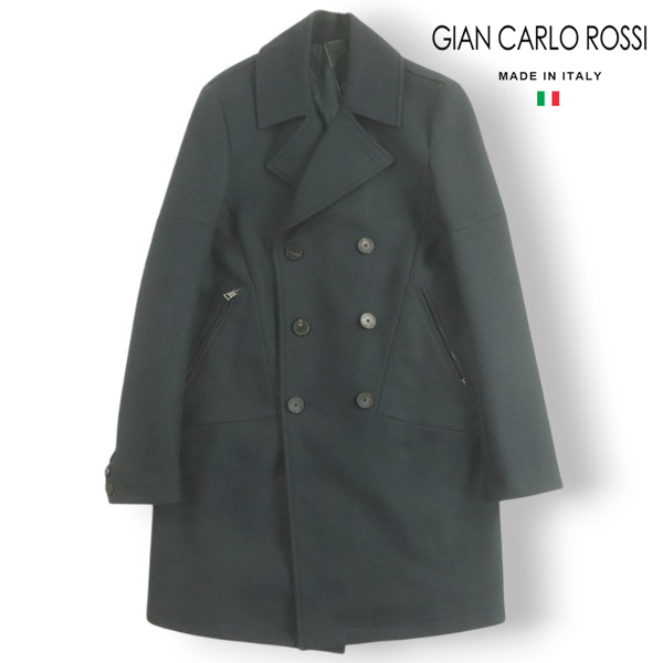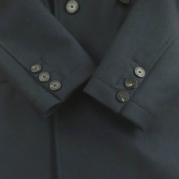美シルエット カシミヤ混 メルトンウール 刻印水牛ボタン ロング丈 Pコート |