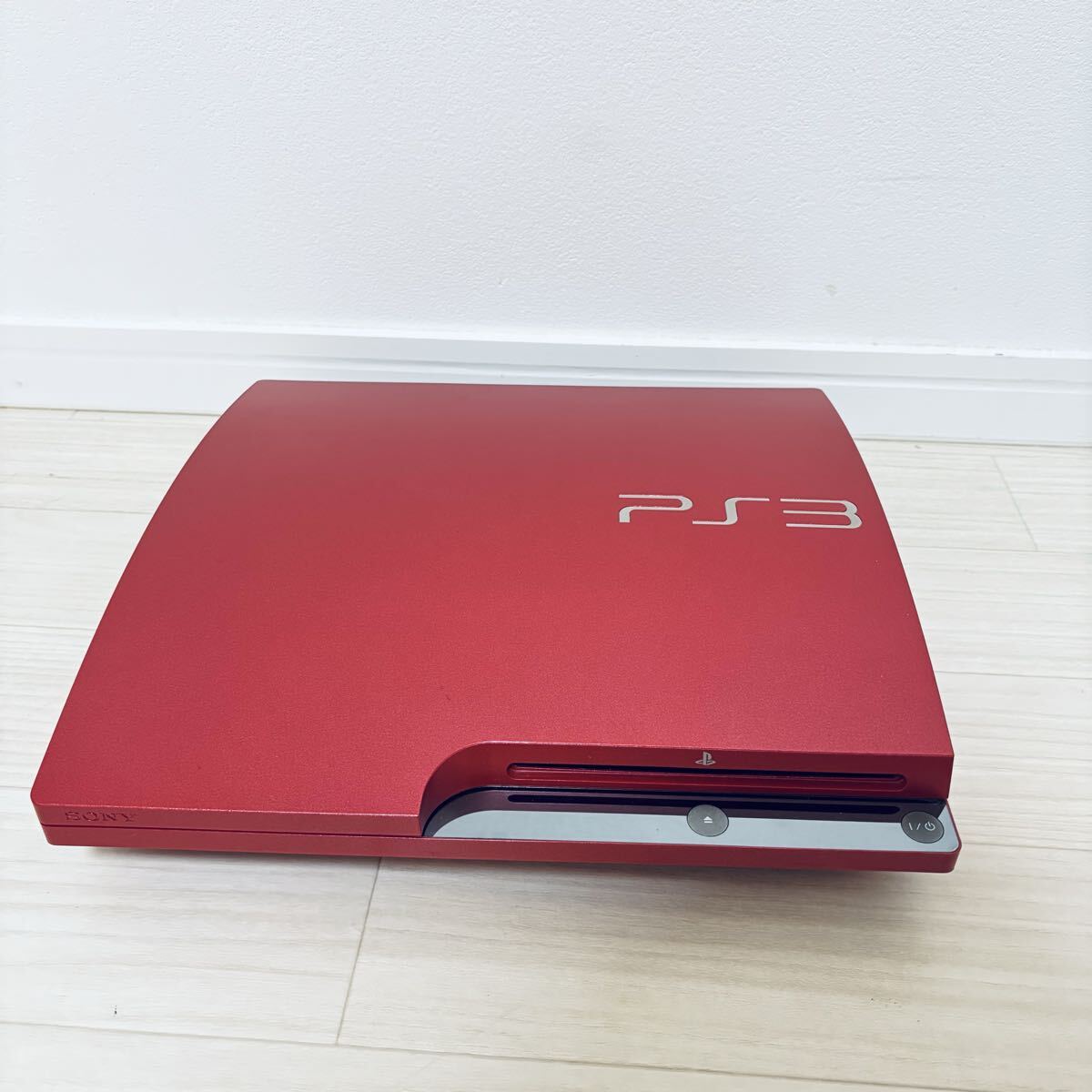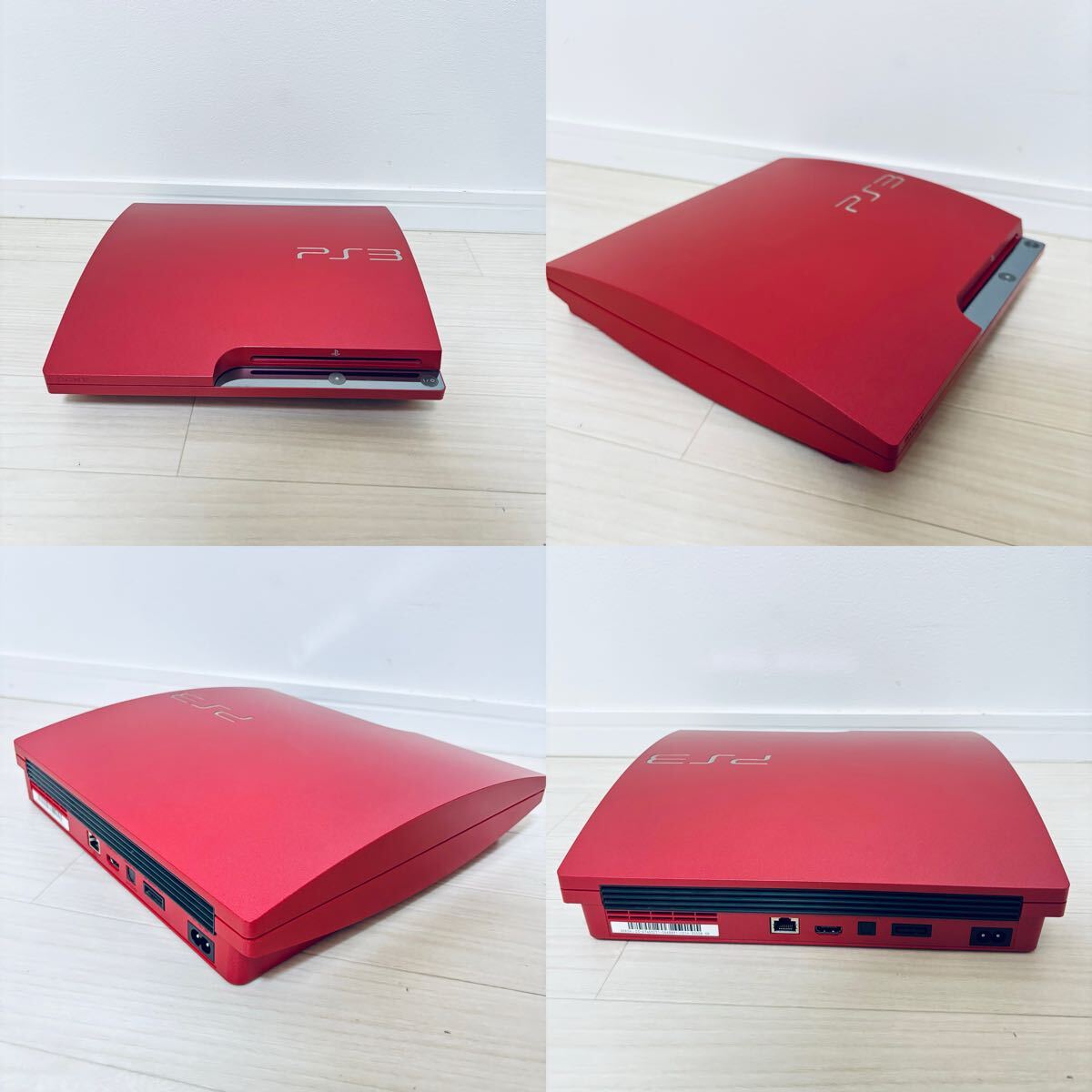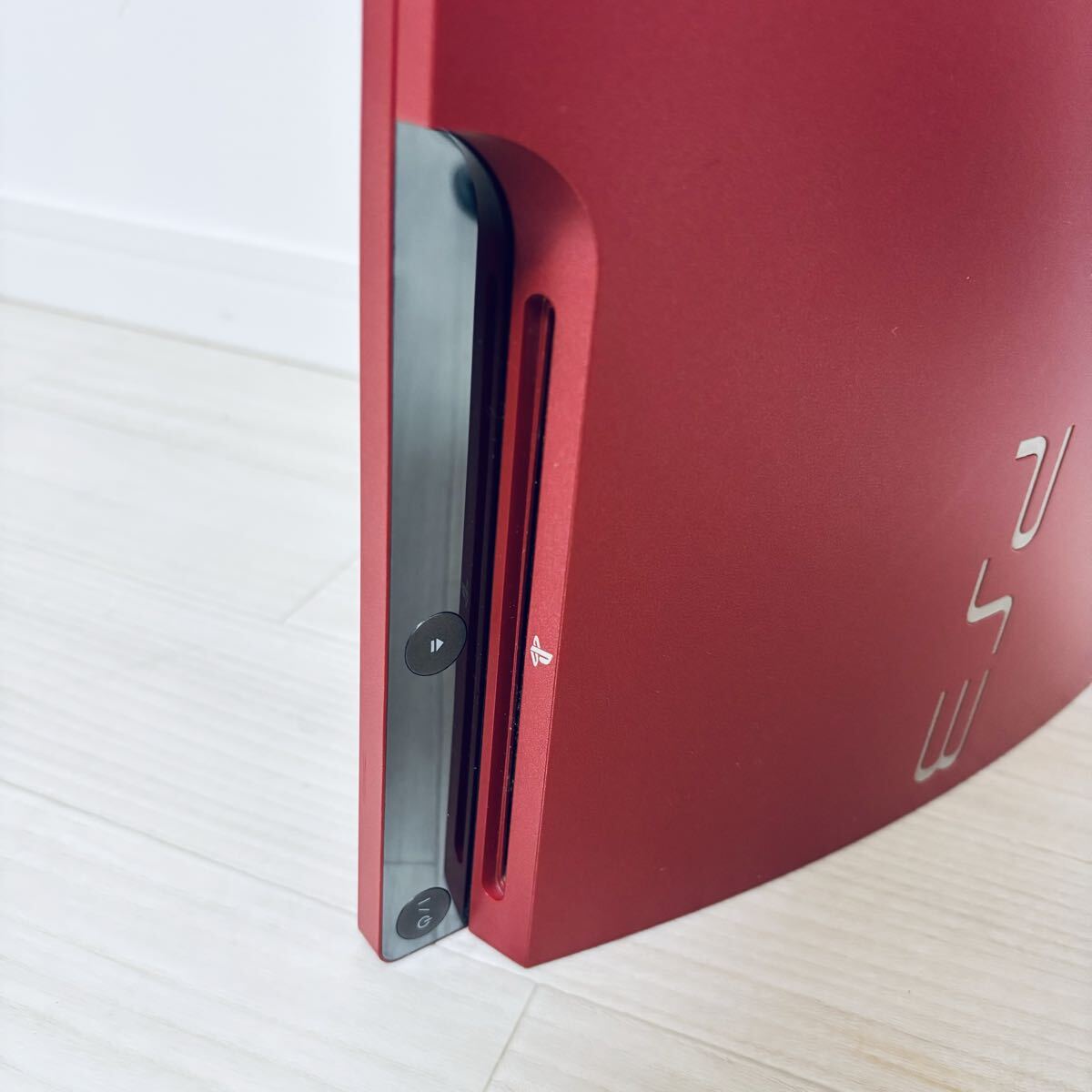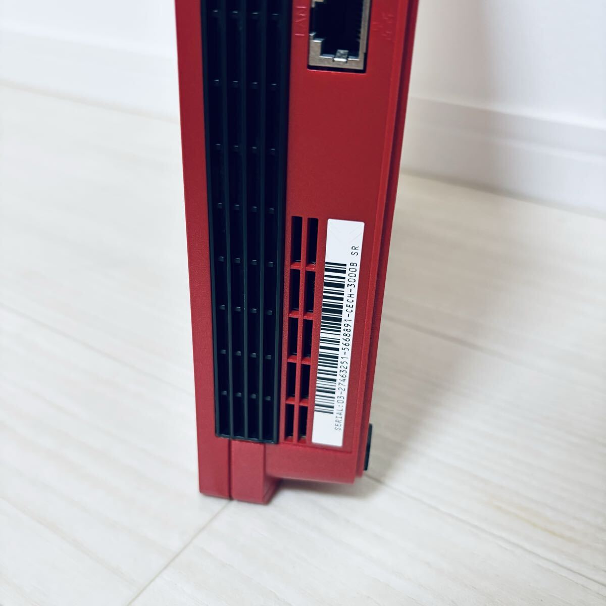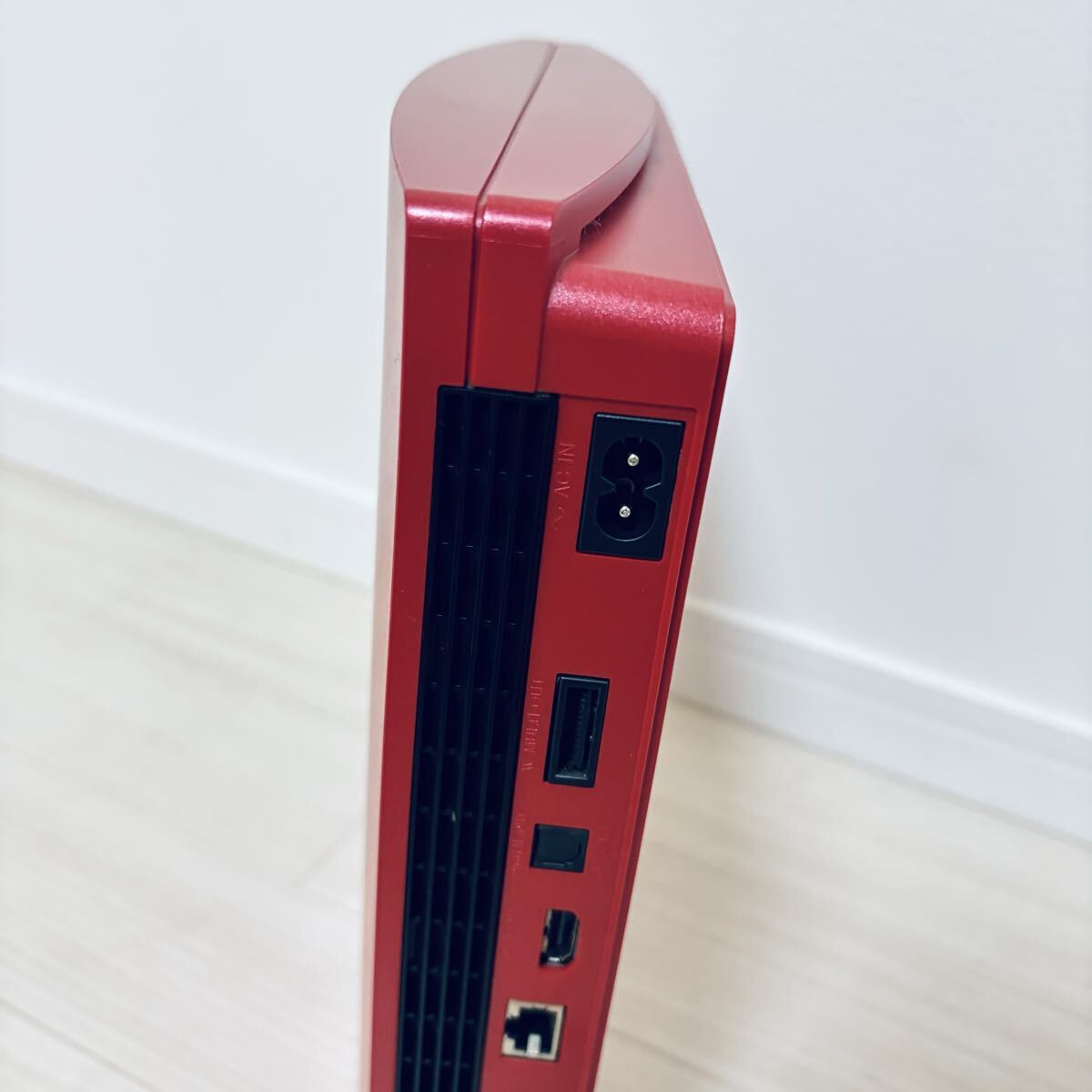 鮮やかなレッドのPS3本体、電源ケーブル付き。