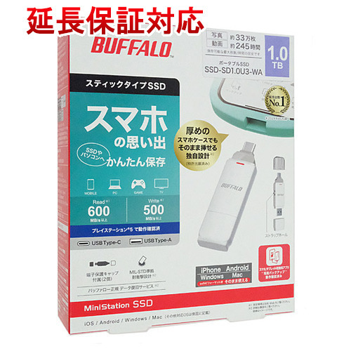 | BUFFALO スティック型SSD SSD-SD1.0U3-WA 1TB ホワイト | |
