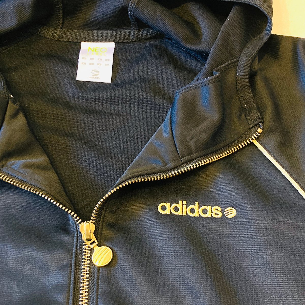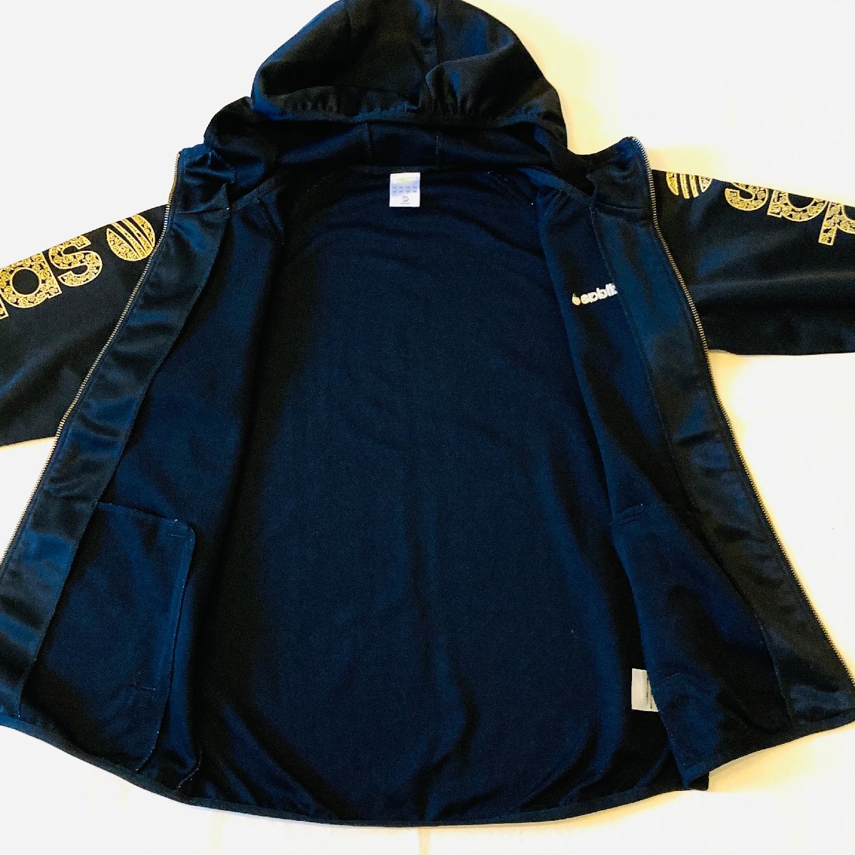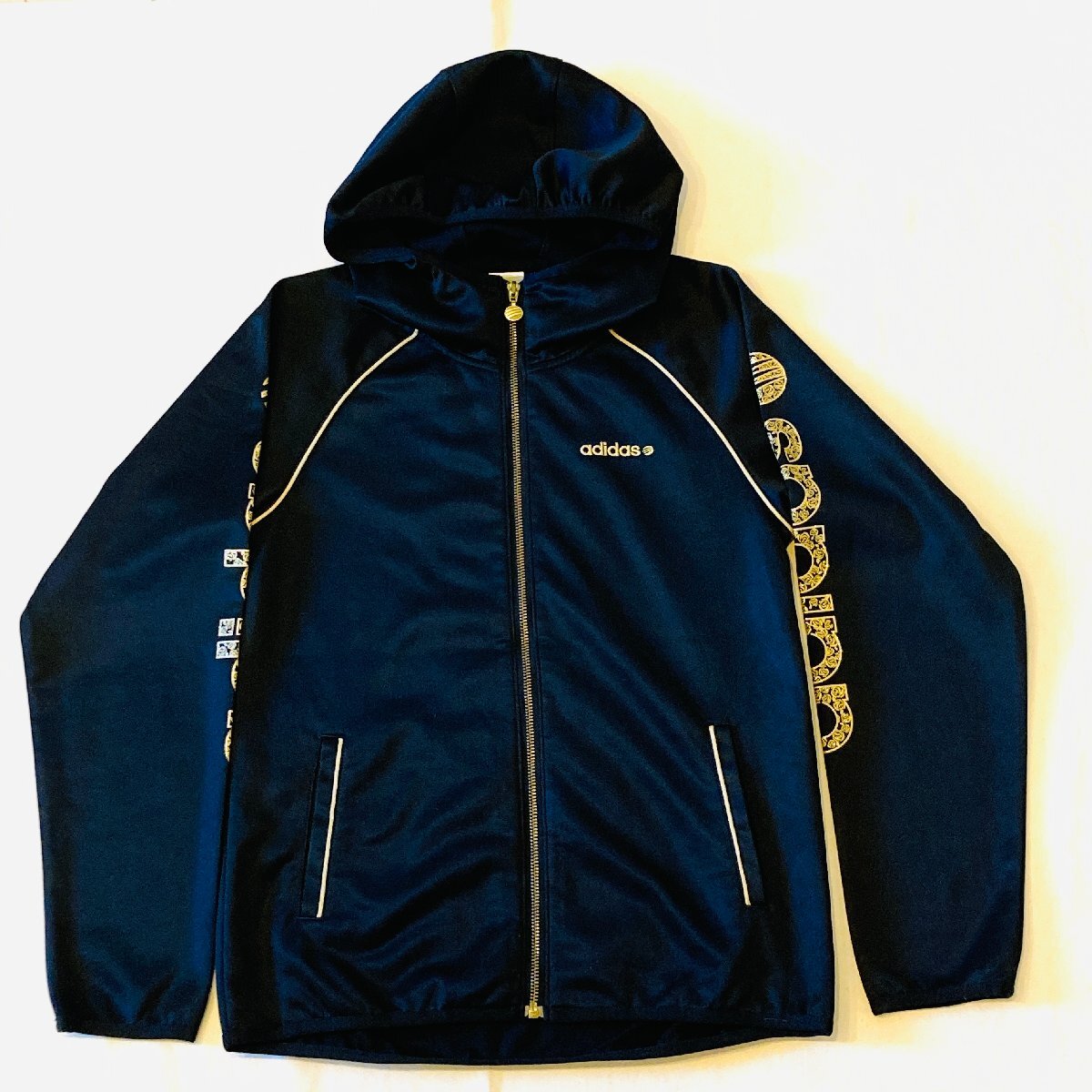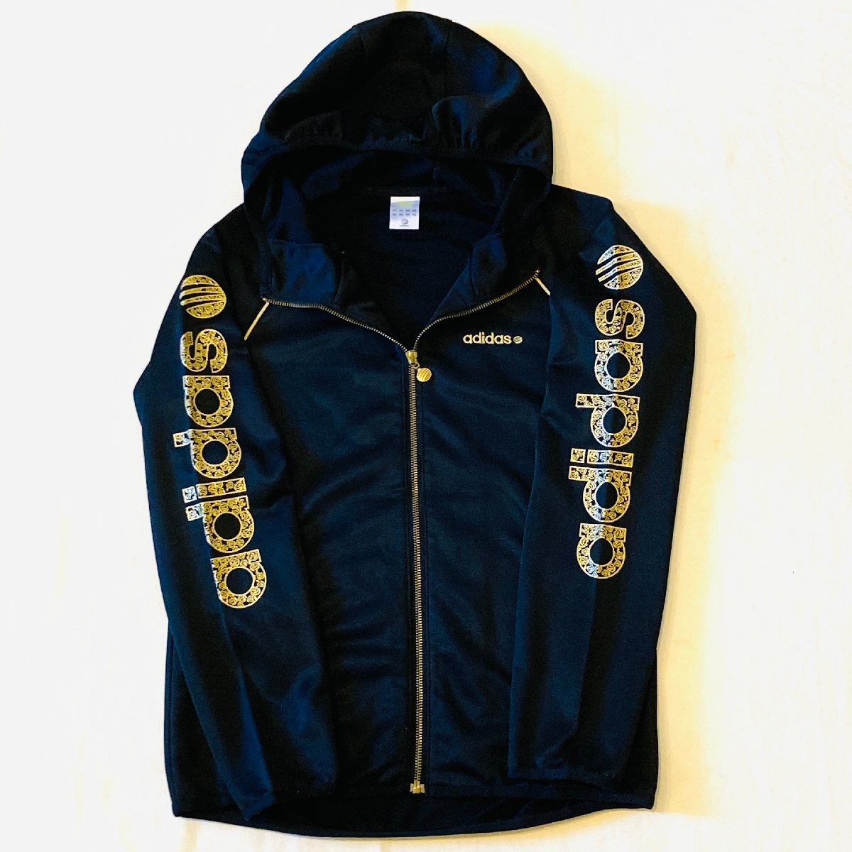 adidas NEO LABEL アディダス 薔薇 モチーフ ジップアップ パーカー フーディー ブラック ゴールド 黒 金系 L