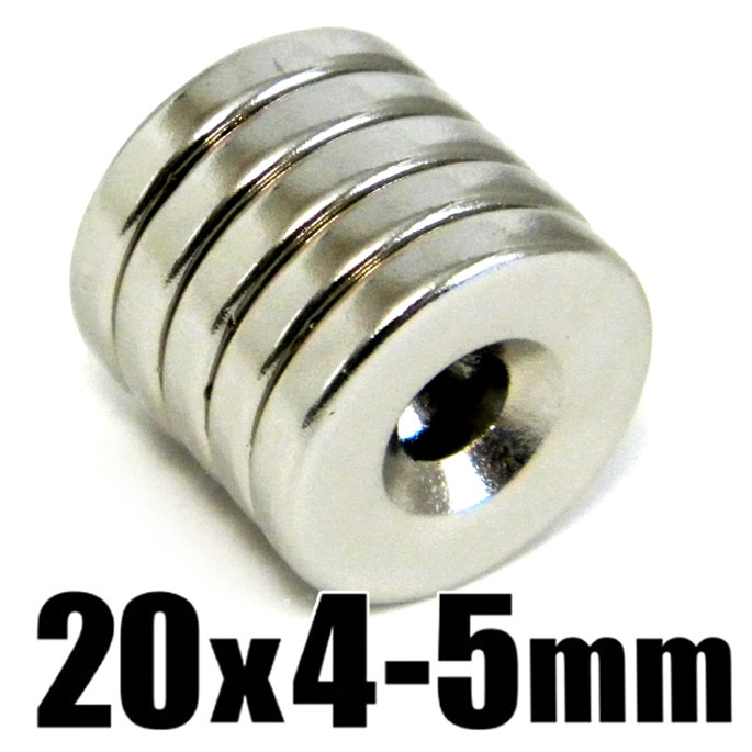 ★ 穴あき 丸形 マグネット ★ ネオジム 超強力 磁石 ◆ 直径20mm x 厚み4mm(ネジ穴 5mm)★【5個セット】