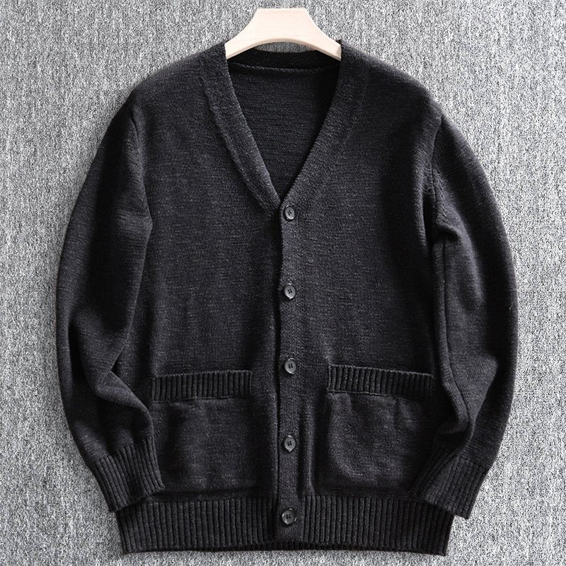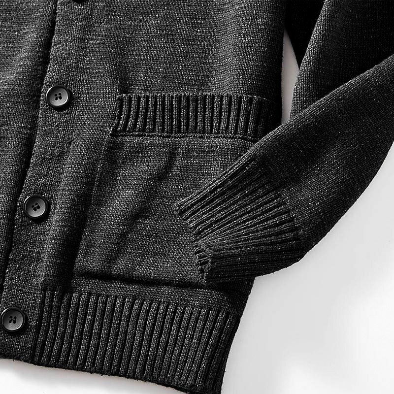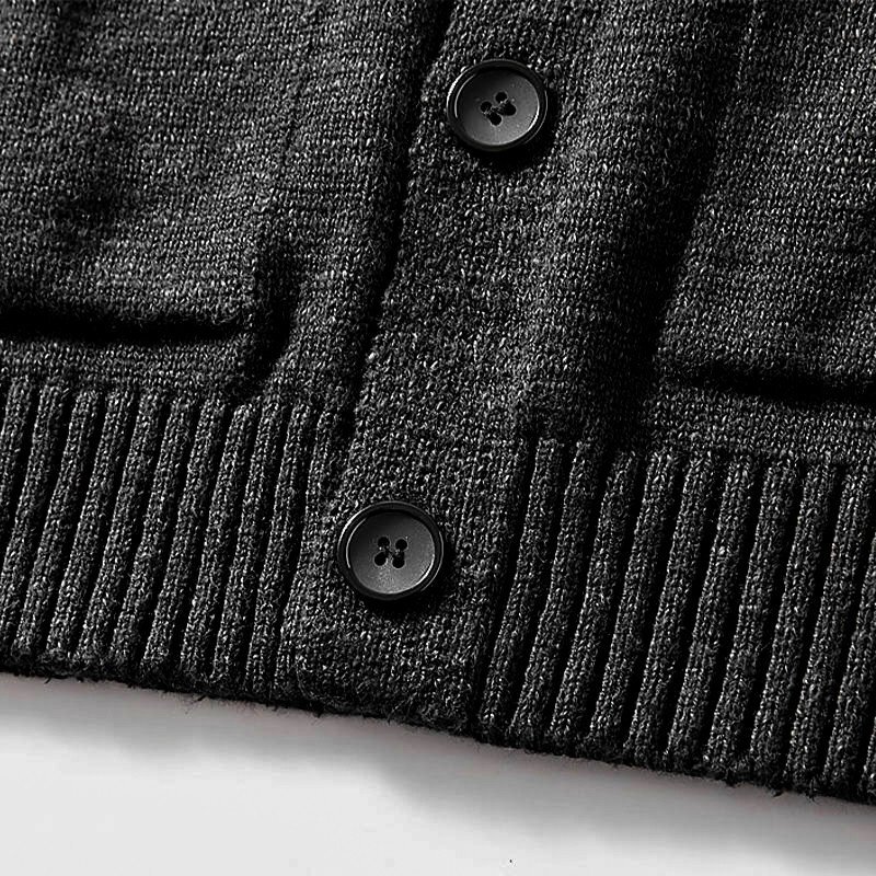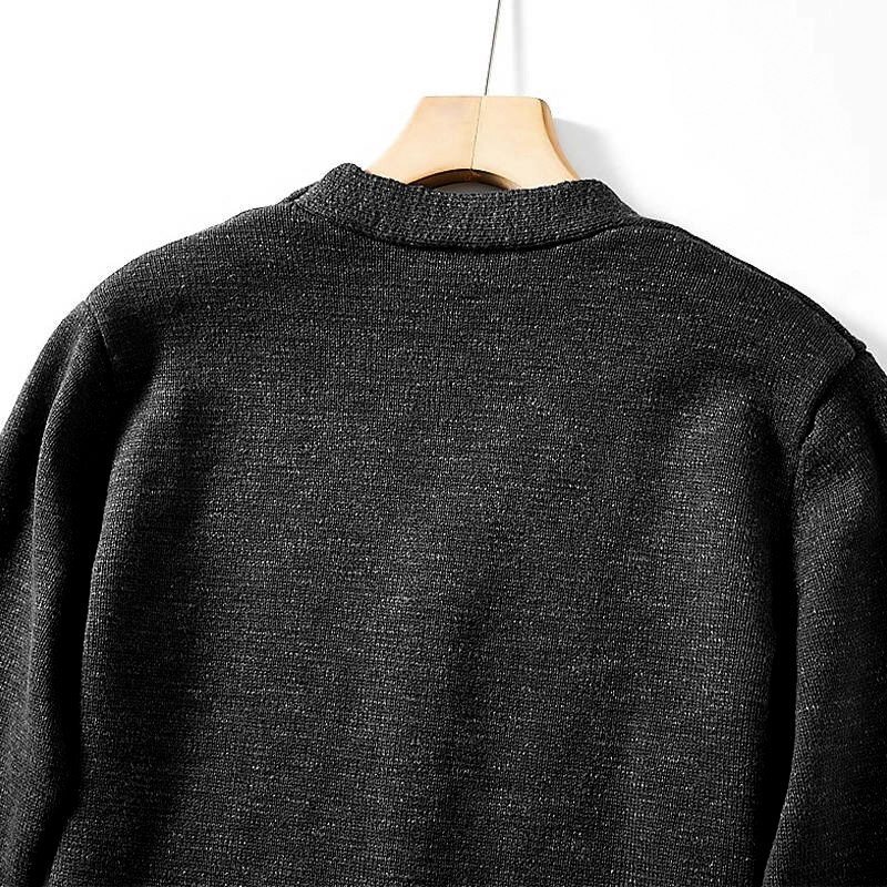 新品 ウール混 カーディガン ストレッチ ノーカラー 厚手 暖かい 秋冬 柔らかい Vネック 無地 メンズ ニットセーター 黒 T8105-M