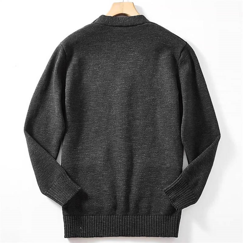 国内未販売 新品 ウール混 カーディガン ストレッチ ノーカラー 厚手 暖かい 秋冬 柔らかい Vネック 無地 メンズ ニット セーター/灰T8105-M