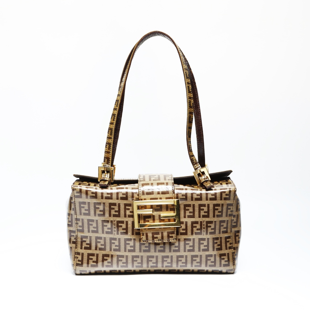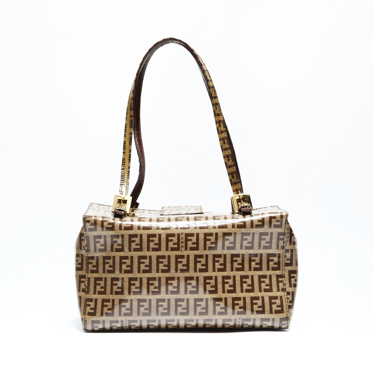極美品 FENDI ズッキーノ PVC エナメル バニティ マンマ ハンドバッグ ブラウン