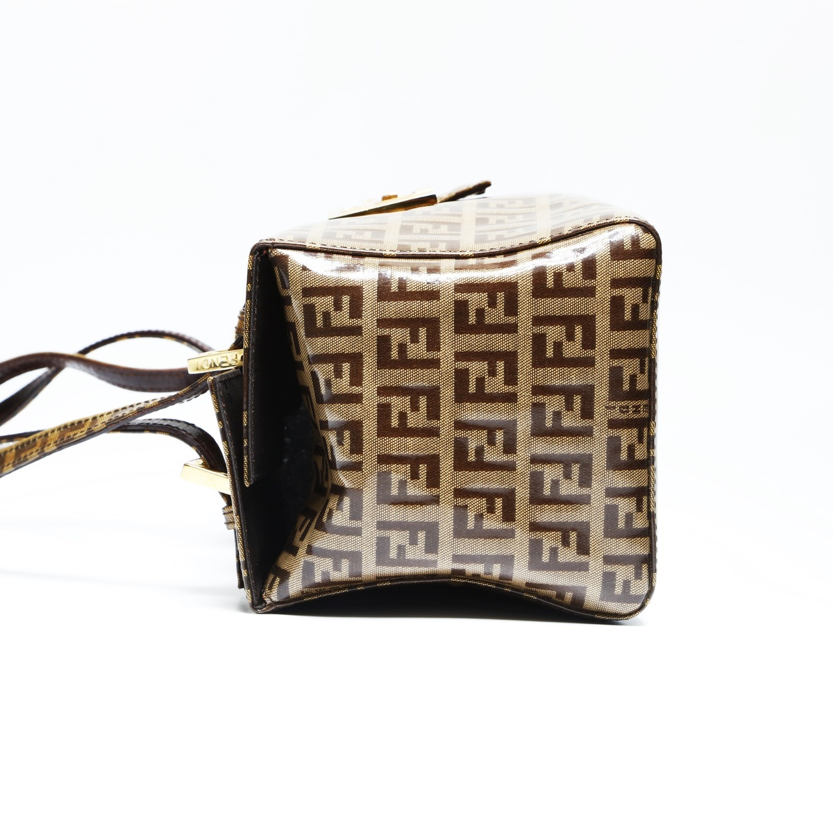 フェンディ FENDI ハンドバッグ ズッキーノ PVC エナメル バニティ マンマ ブラウン