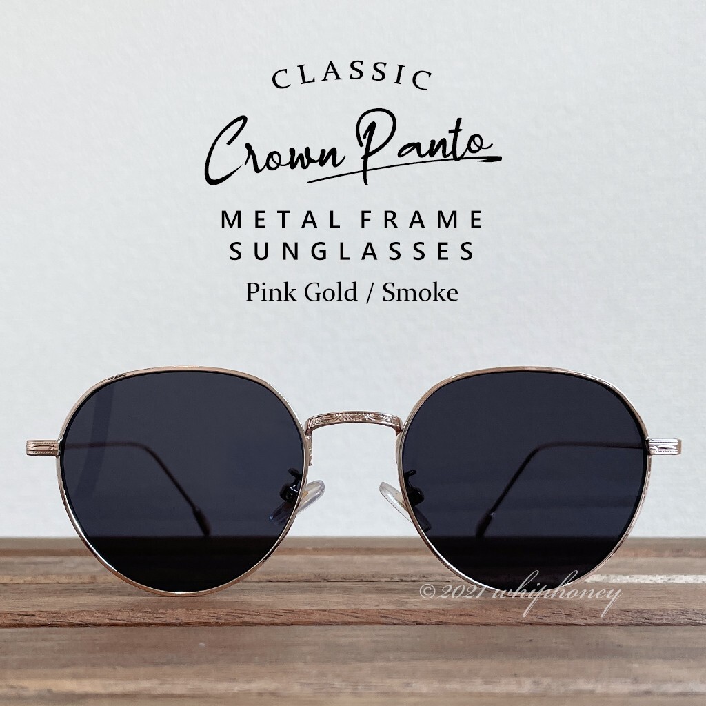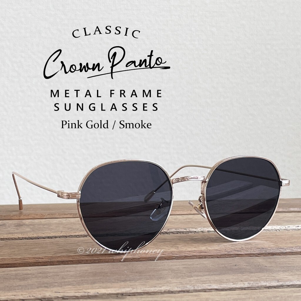ラウンドメタルクラウンパントサングラスゴールドフレームスモークレンズ