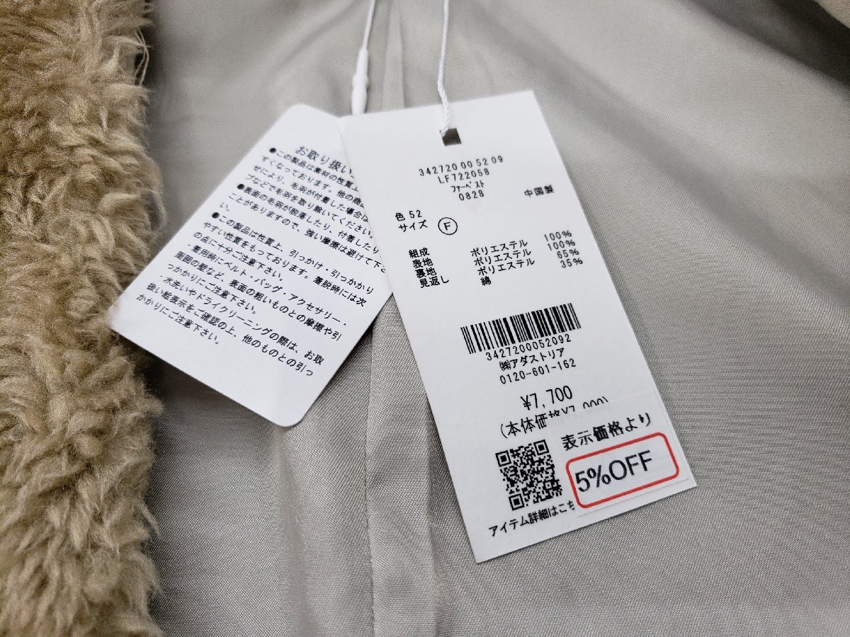 LOWRYS FARM ローリーズファーム ファーベスト ベージュ F フリーサイズ LF722058AD タグ付き ポケット ▽5287 | |||||||||