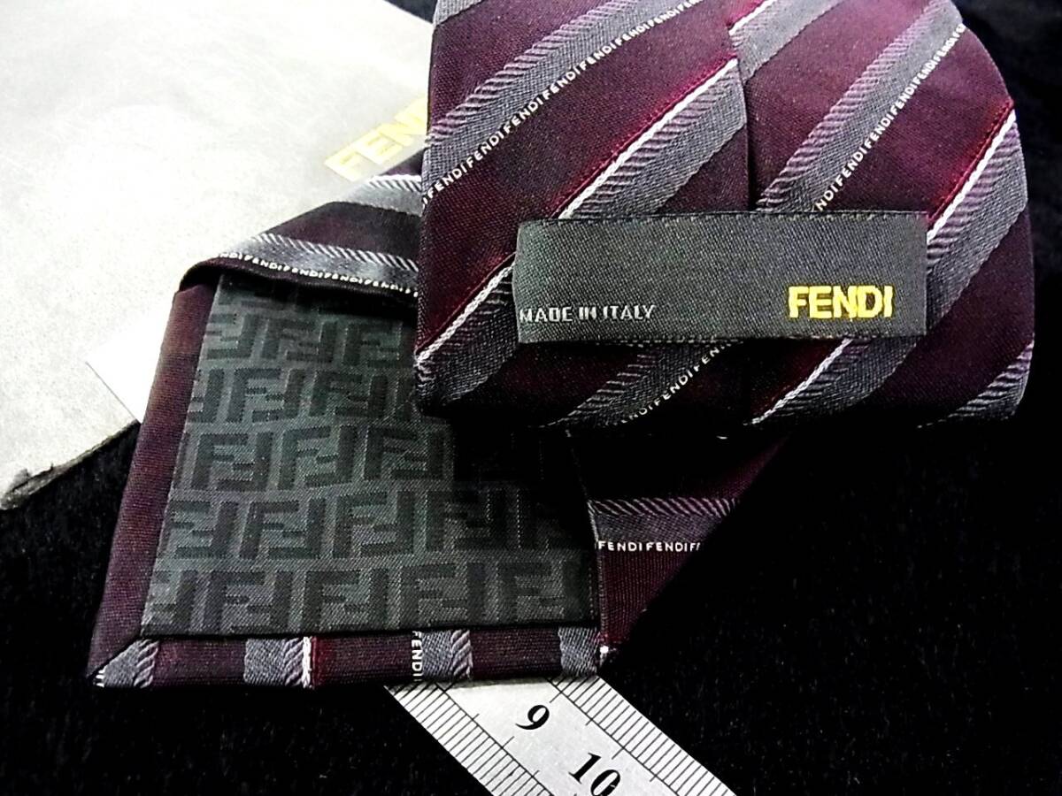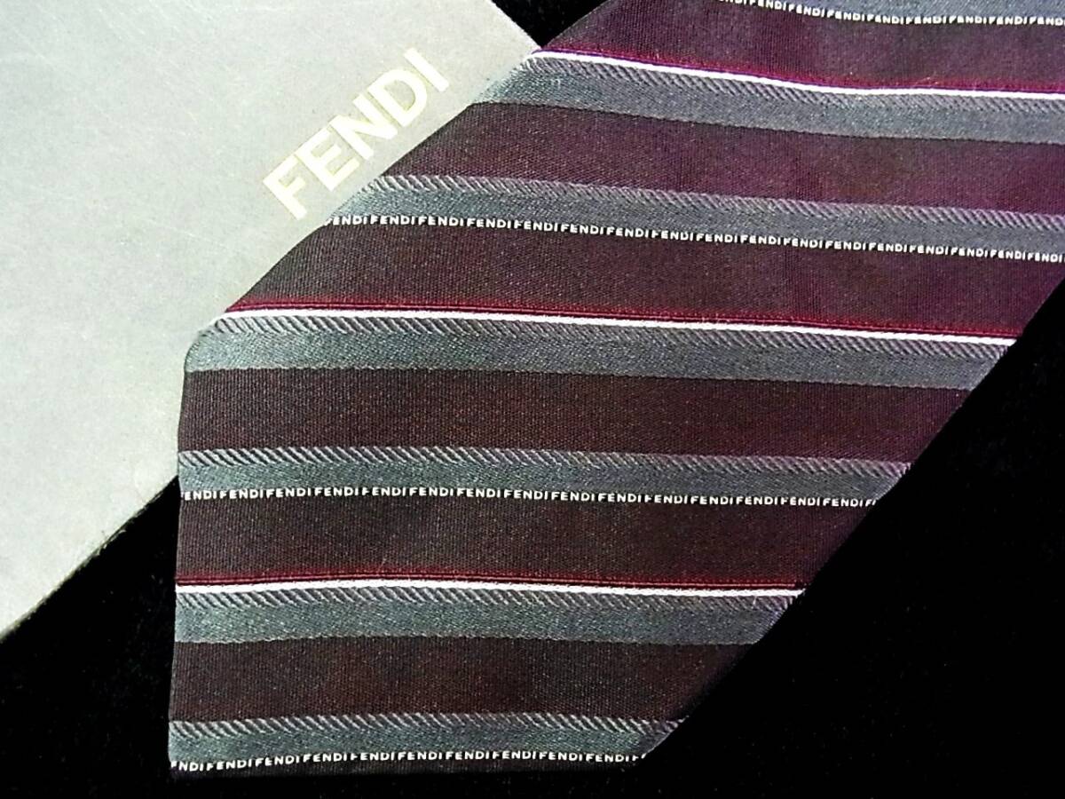 ○E2977N●USED並●【ロゴ・ストライプ】フェンディ【FENDI】ネクタイ★