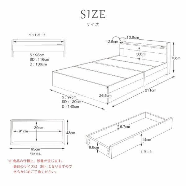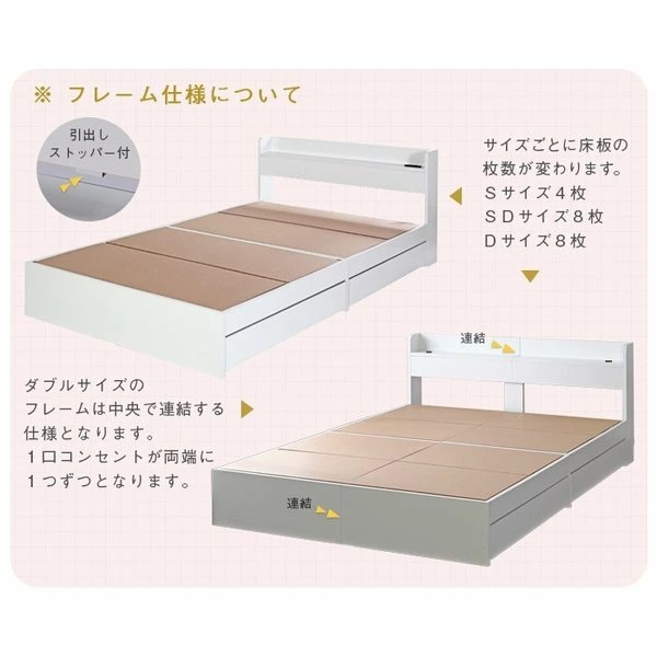 シンプルなデザインでも実用的な多機能をしっかり備えたベッドフレームです。