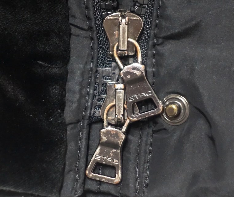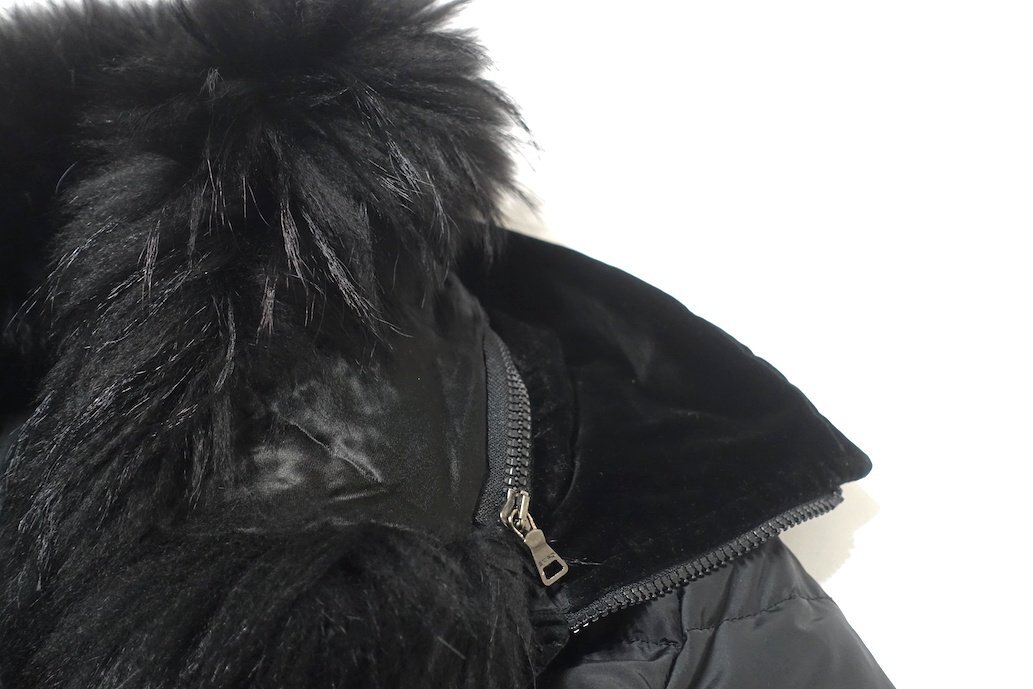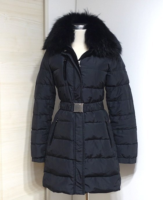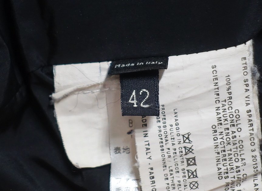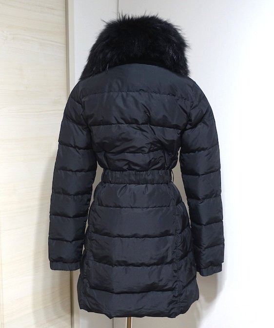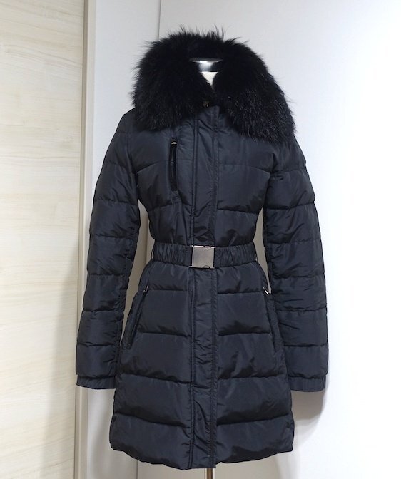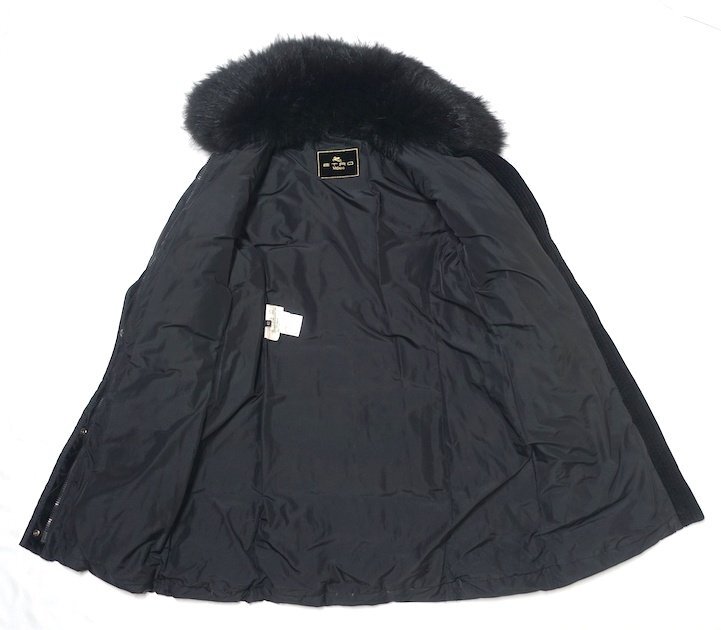 11AW 美品 ETRO エトロ ファー付 ベルテッド ダウンコート ポリエステル ブラック レディース 42 ジャケット アウター