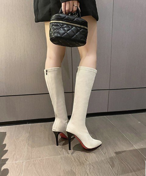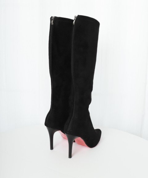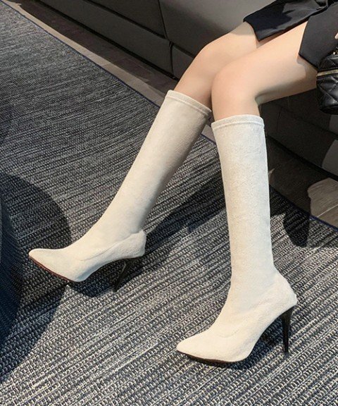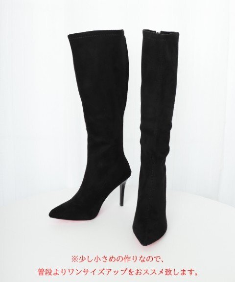 9cmハイヒール 美脚ブーツ 脚長 膝下 スエード調 大人 オルチャン きれいめ シンプル 秋冬 人気 韓国