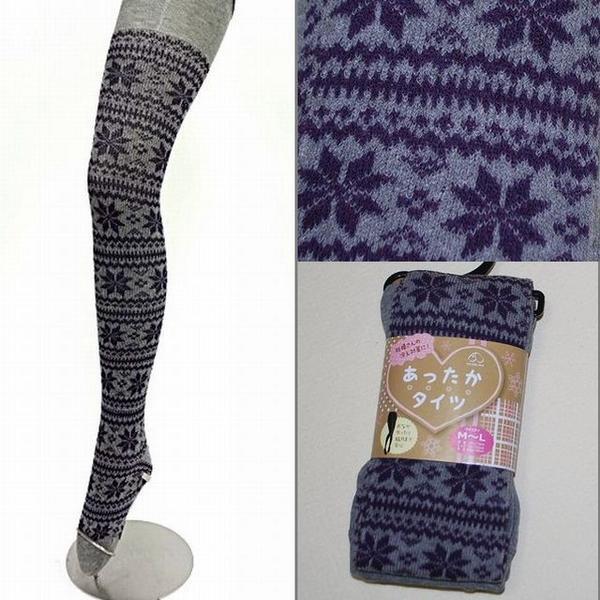送料無料 犬印 M/L マタニティ あったかタイツ 冷え予防 雪柄グレー