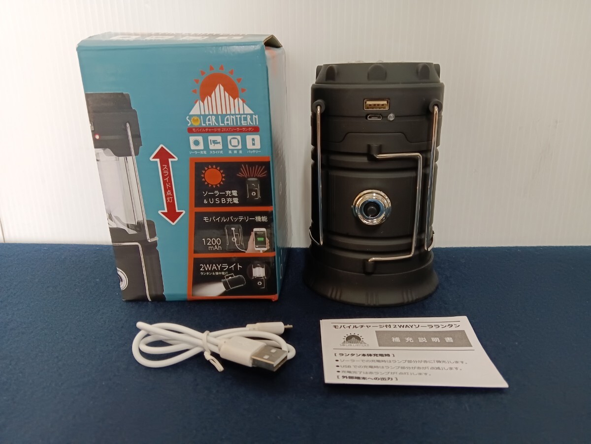 USBで充電しライトが両方点くことを確認しましたソーラー充電とモバイルバッテリー機能は試しておりません。