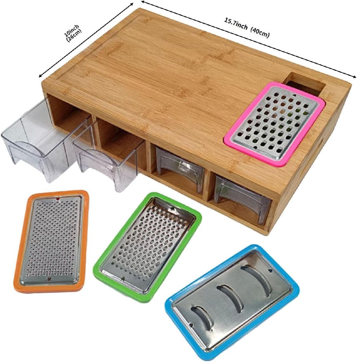 竹製まな板大型木製まな板 容器付き 蓋付き 食品ドロップゾーン ハンドル付き ジュース溝 家庭用 499