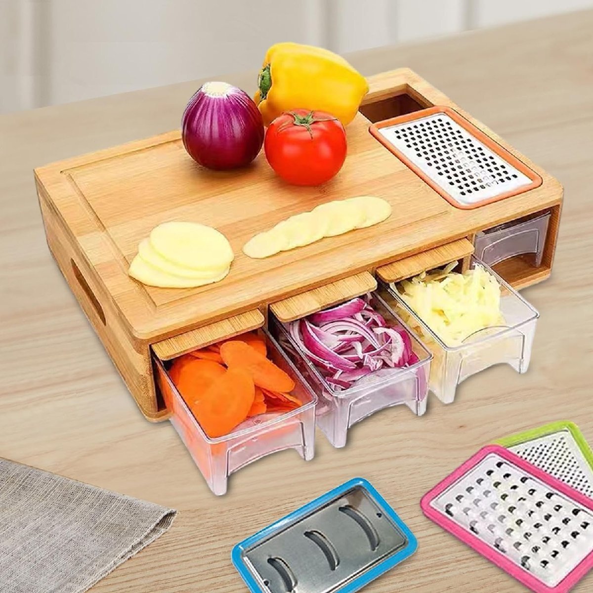 トレイ付きまな板は、チーズ、肉、野菜の刻み、料理の下ごしらえ用に作られています。