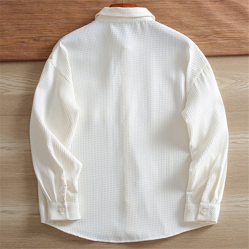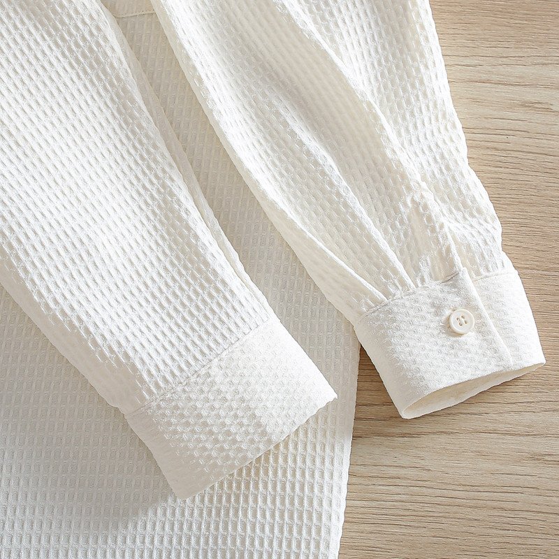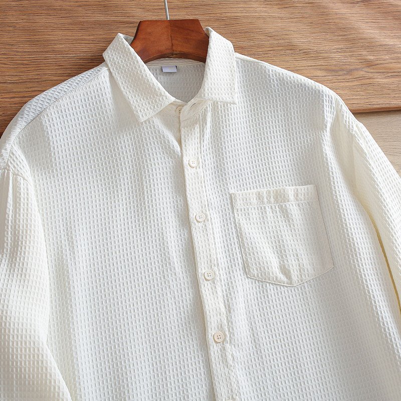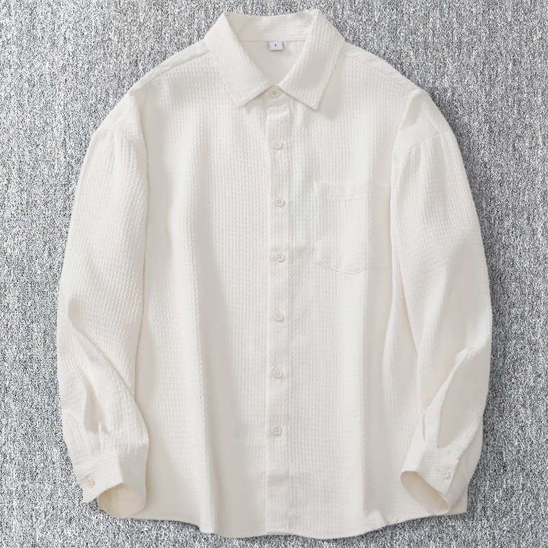 新品 ワッフル シアサッカーシャツ コットン 形態安定 春秋 長袖シャツ 胸ポケット ドロップショルダー メンズ 薄手 無地 ボタンダウン
