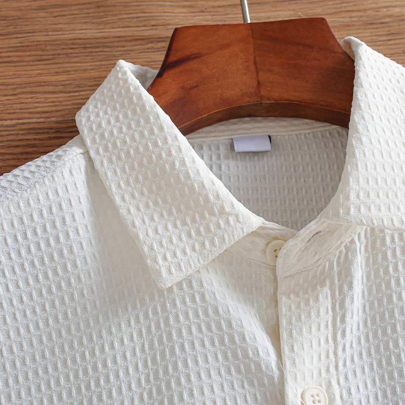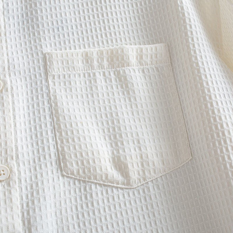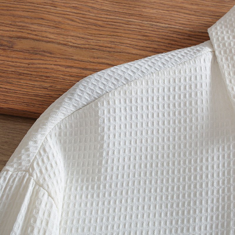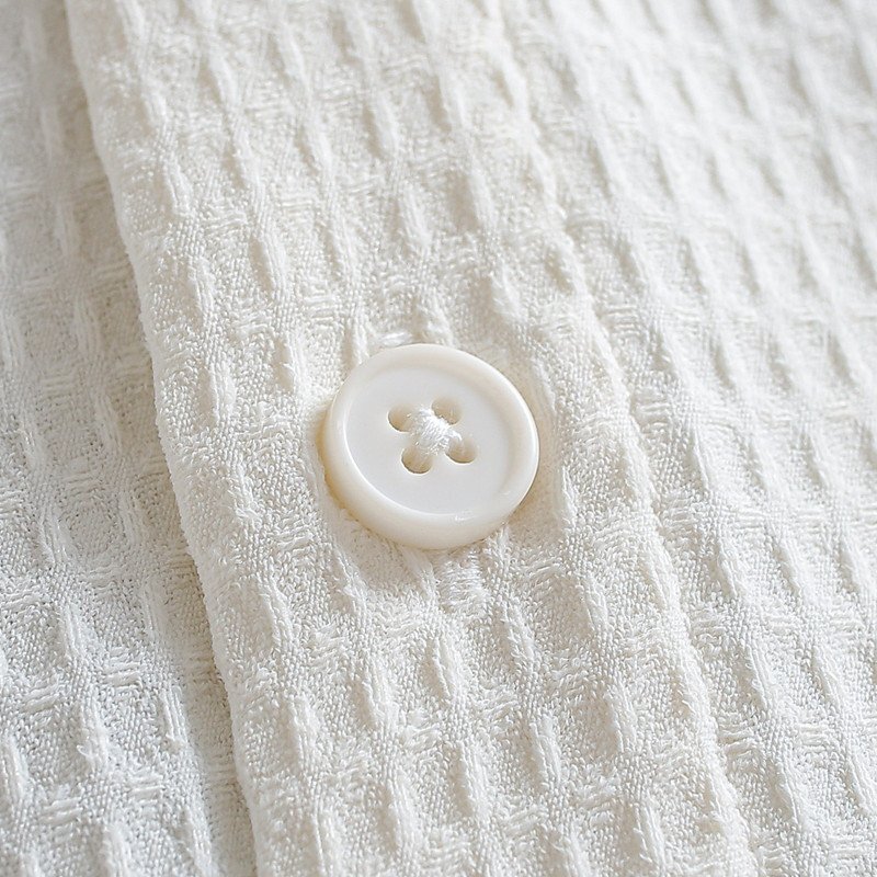 凹凸感のあるワッフルとシボ感が特徴の生地で、肌に張り付きにくく通気性◎