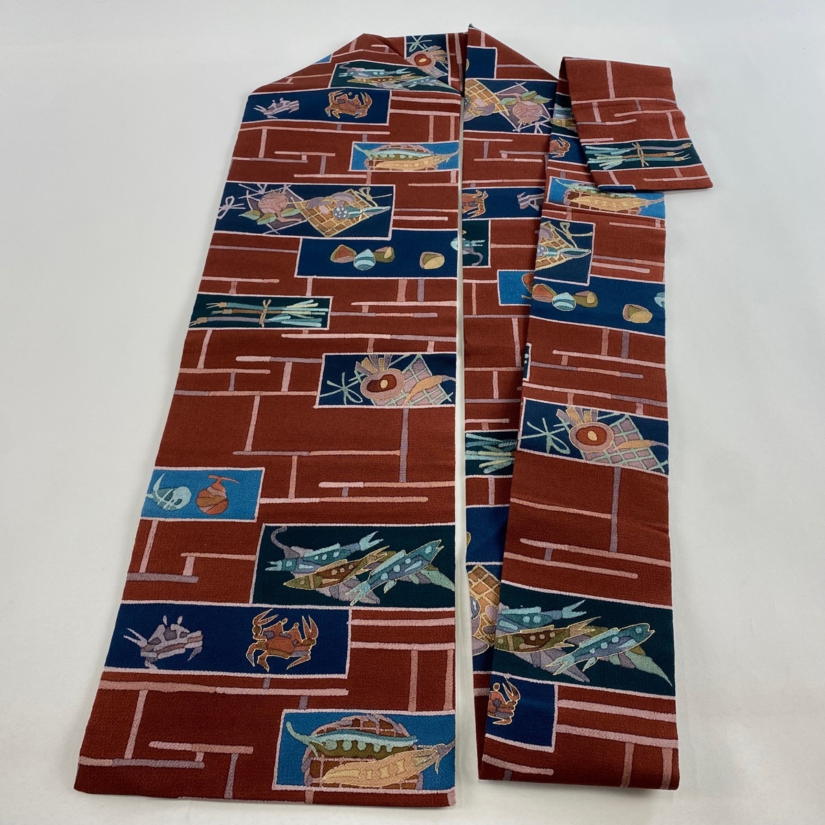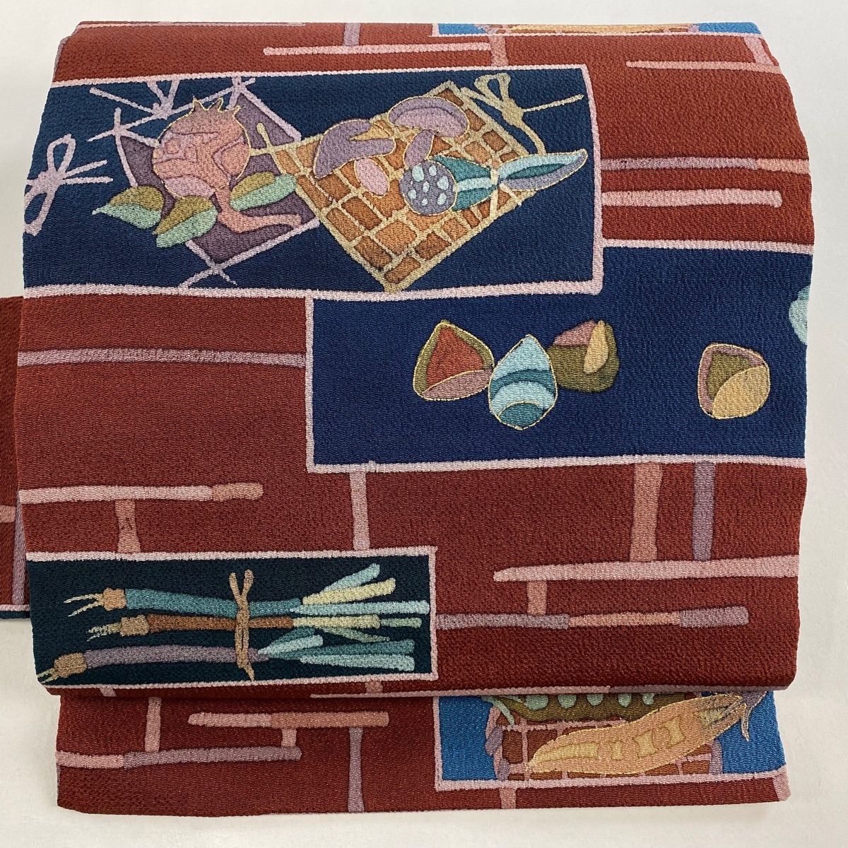 | 名古屋帯 秀品 成尾の 蟹 縮緬 金彩 茶色 正絹 【中古】 |