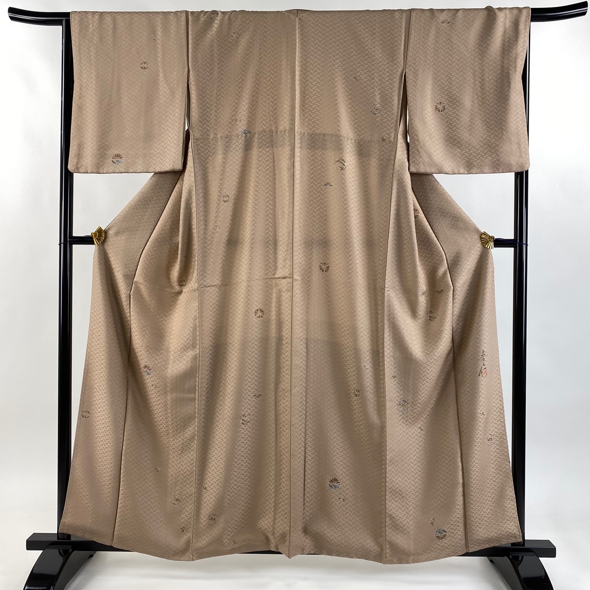 | 小紋 美品 優品 落款 草花 地紋 金彩 小豆色 袷 身丈160 裄丈67 M 正絹 【中古】 |