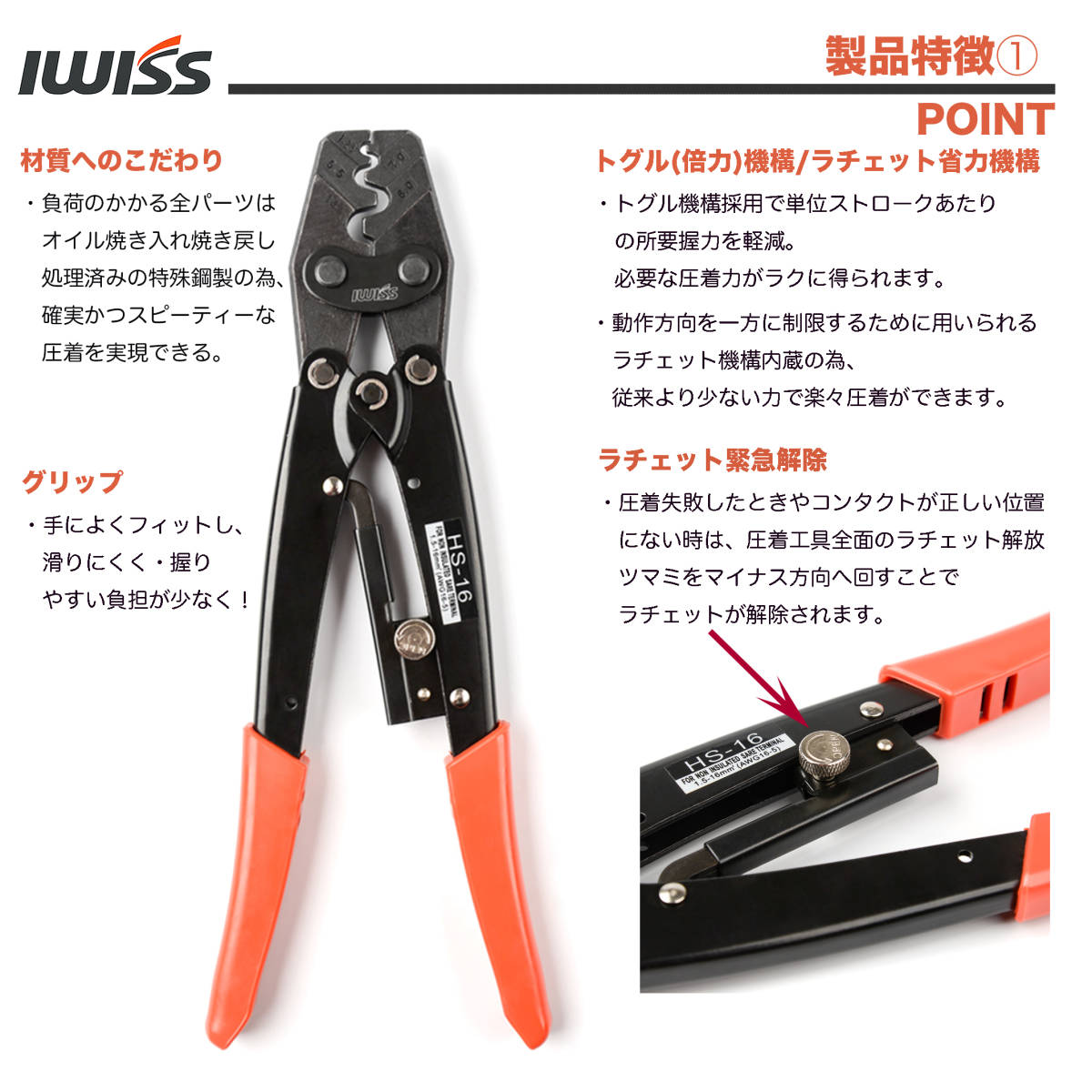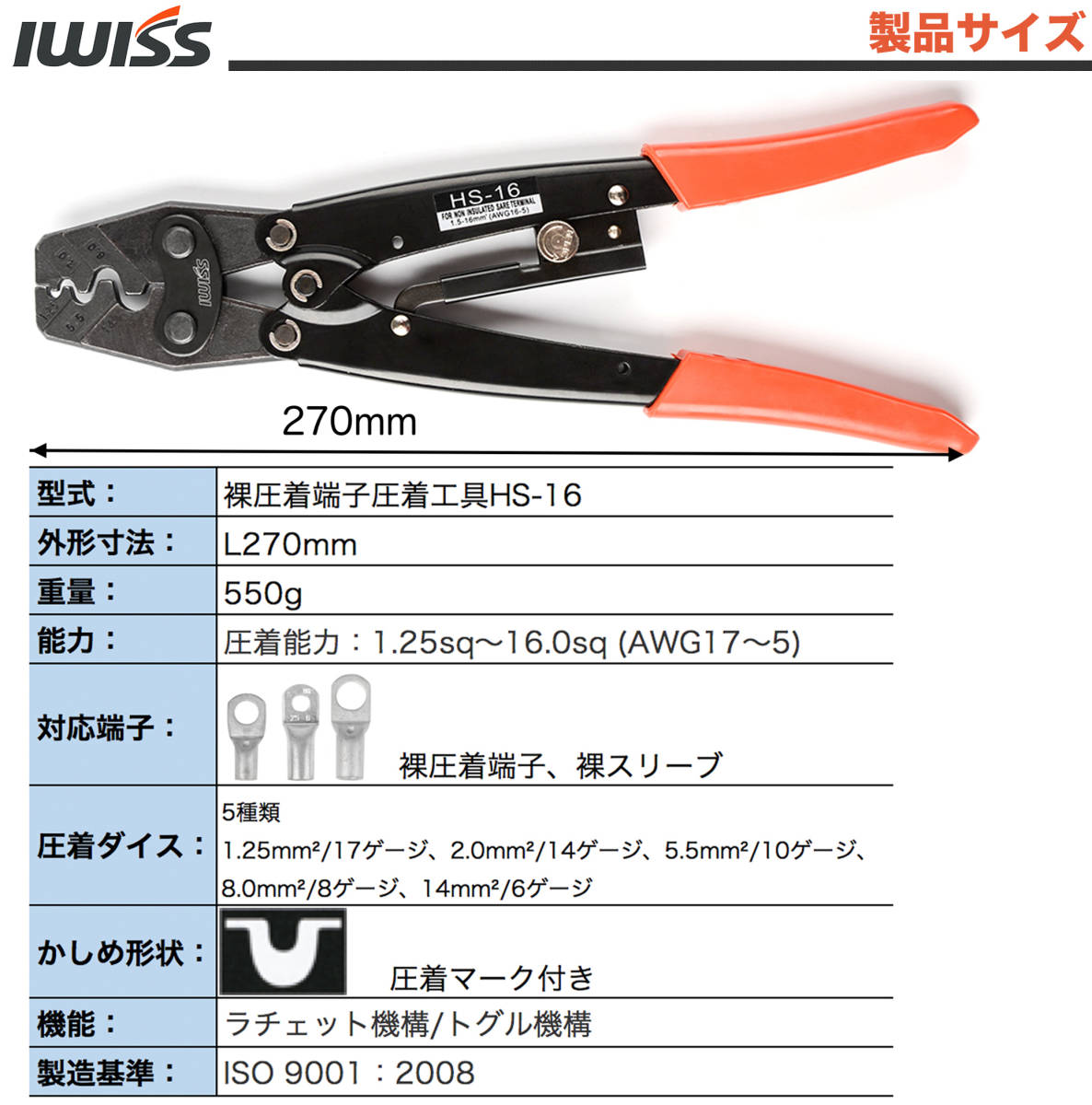 ★アイウィス(IWISS)★裸圧着端子 裸圧着スリーブ 圧着工具 汎用タイプ 1.25-16.0sq対応 HS-16★ | |||