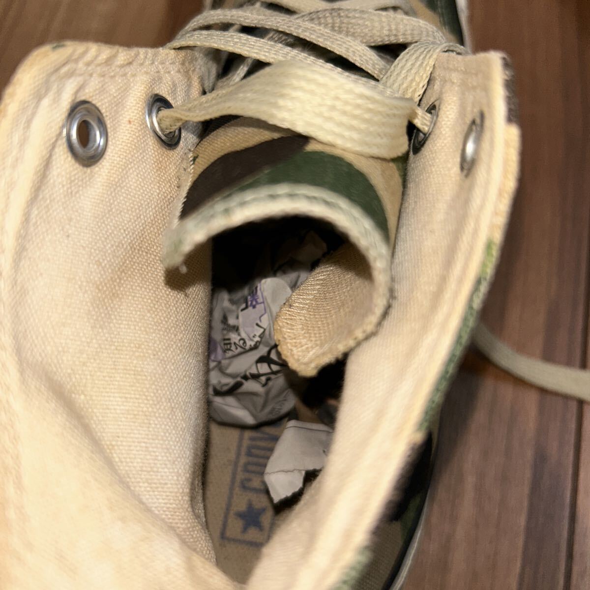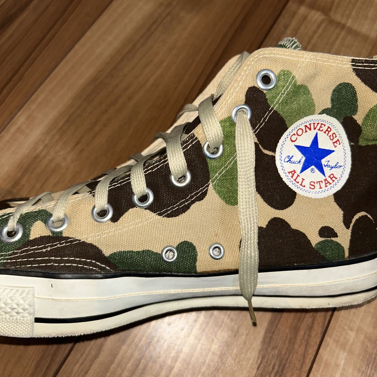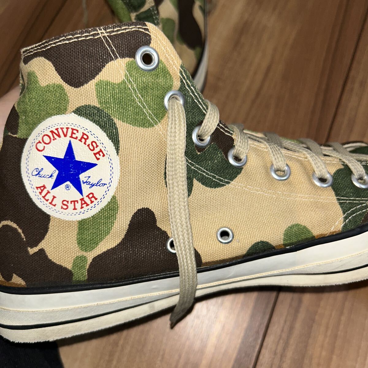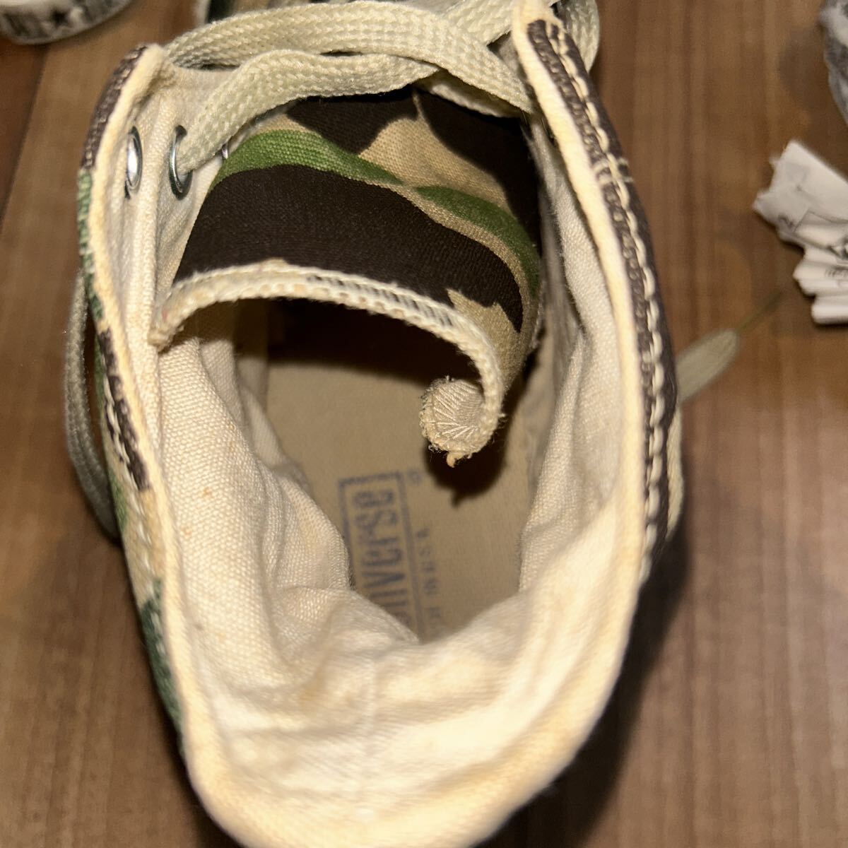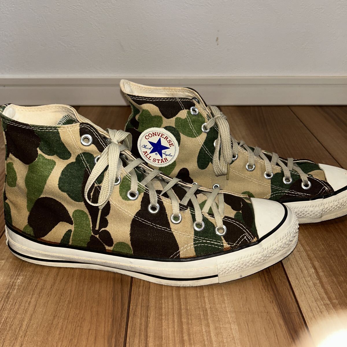 converseの83camoオリジナルです。 サイズは10ハーフです。アウトソール30.5です。状態良好です。ソールの硬化は見た感じほぼ無いと思います。あくまでも私感なので不安な方は入札をお控えください。生地も破れ等見当たりません。ソールの減りも古い物の割にかなり少ないと思います。複数落札でも商品の同梱発送は対応致しかねますのであらかじめご了承ください。ノークレームノーリターンでお願いします。
