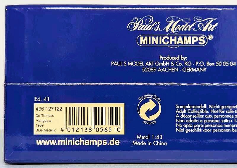【 Minichamps 】1:43 De Tomaso Mangusta 1969 #436 127122