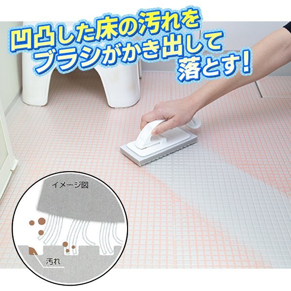 水に濡らしてこするだけで、ツンツンブラシが浴室床の凹凸ミゾに入り込み、ヌメリや汚れをしっかりかき出します。