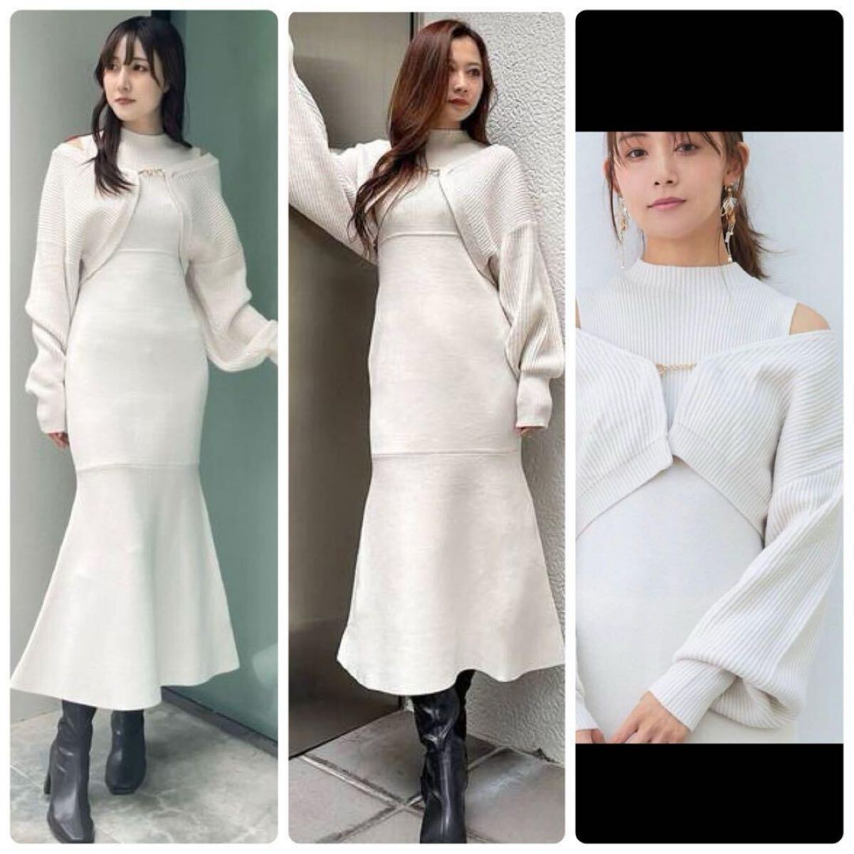完売人気マーキュリーデュオ アンサンブルニットワンピースセットアップ2点セットアイボリー