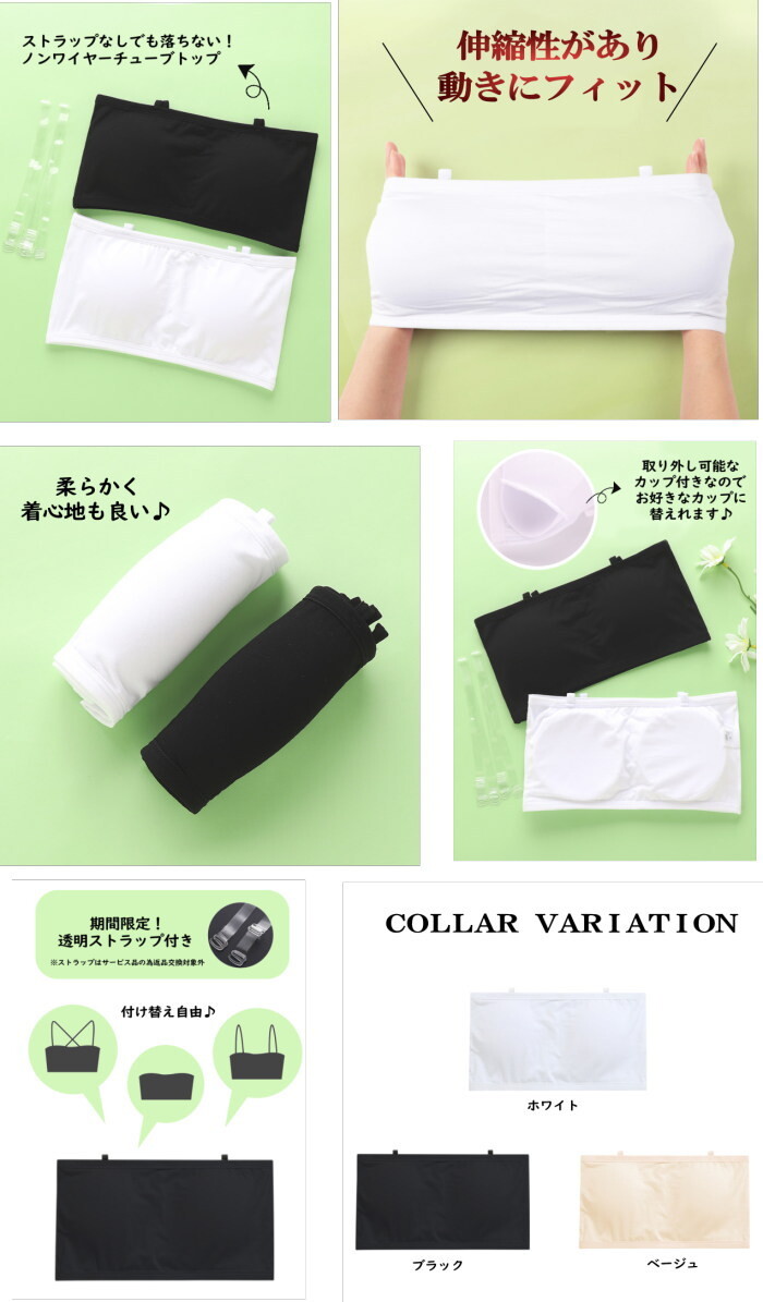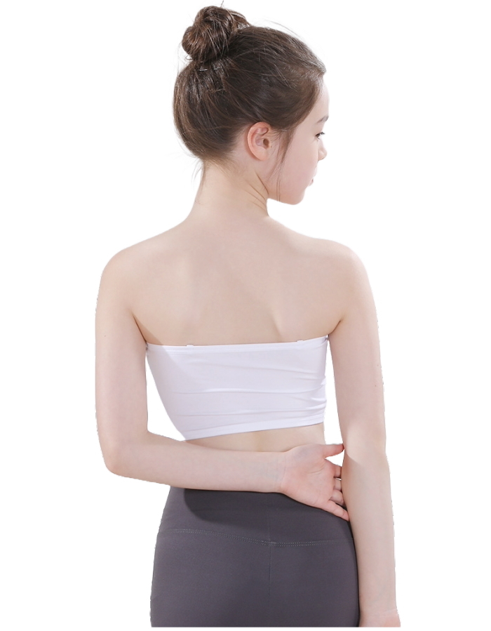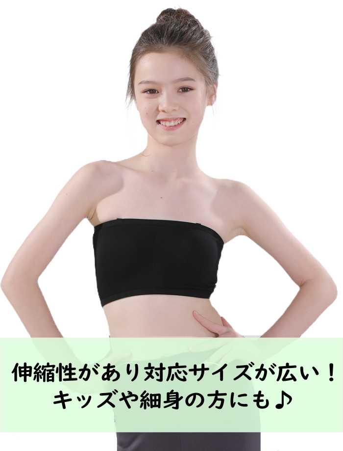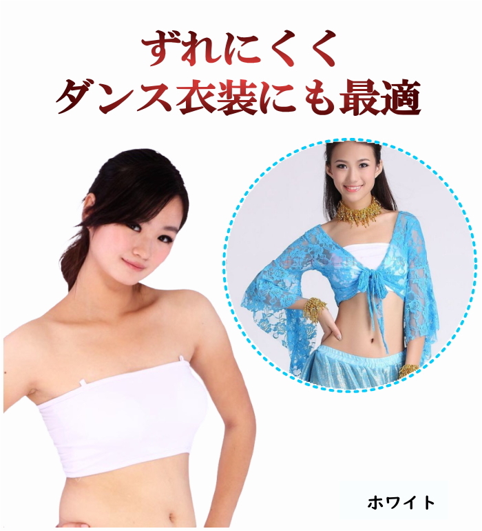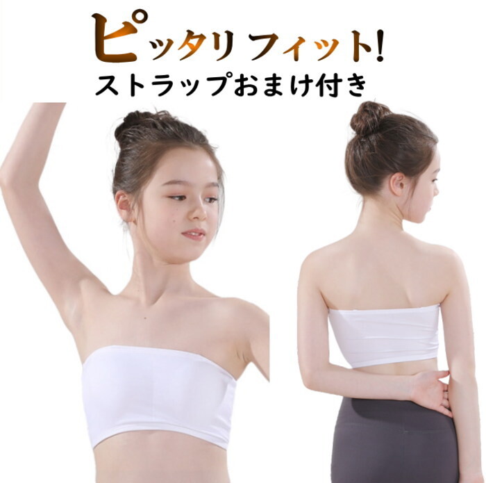 ホワイトLサイズ■チューブトップ ストラップ キッズ レディース カップ付き ずれない 落ちない ダンス ブラ ノンワイヤー cy14n-p0
