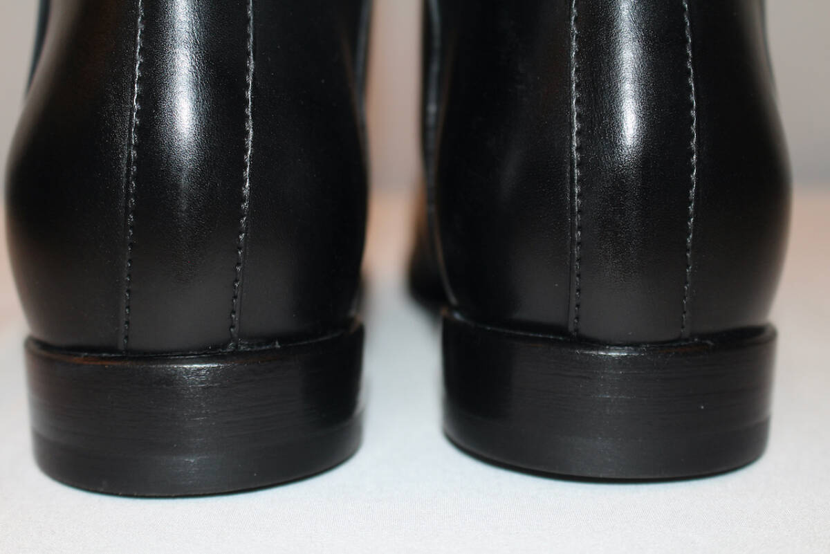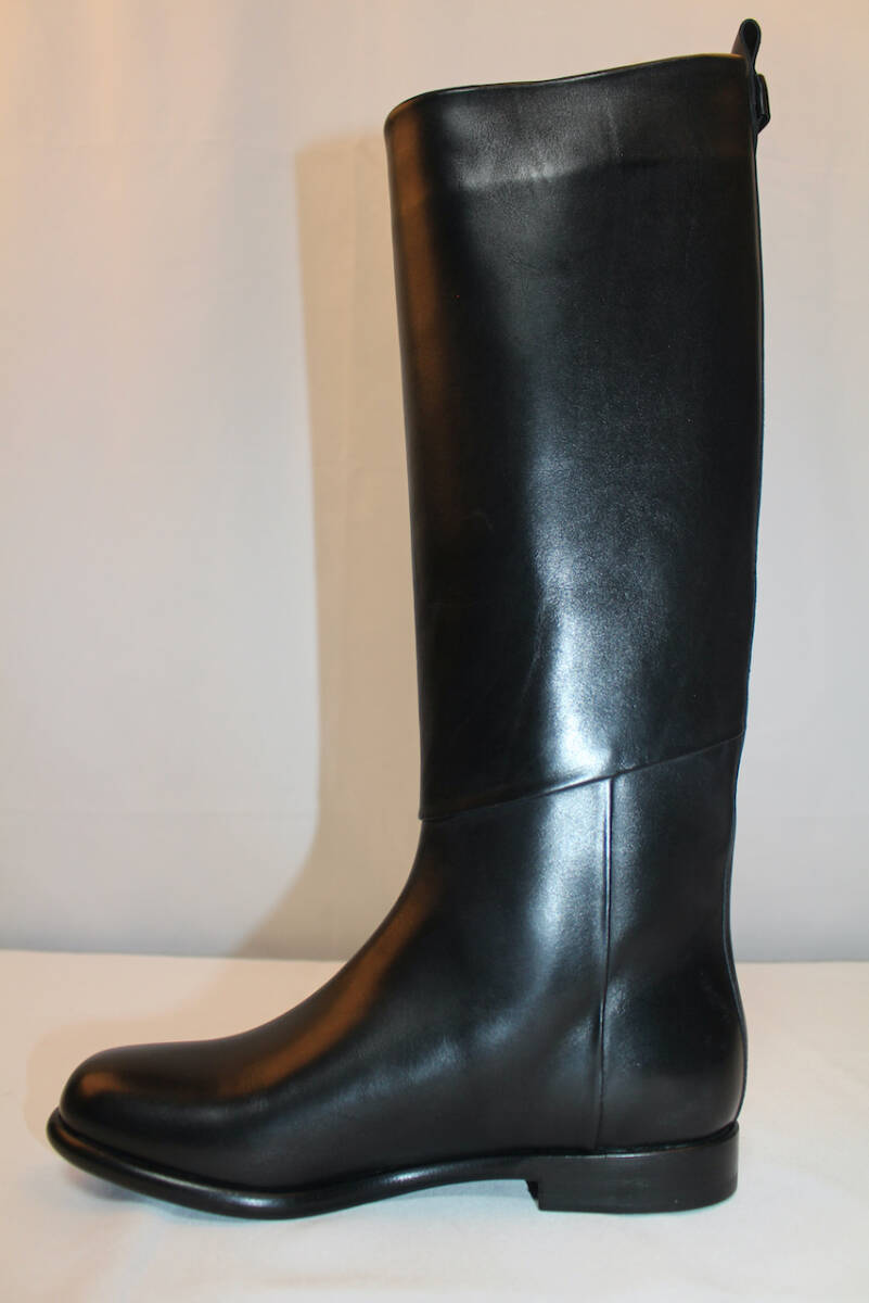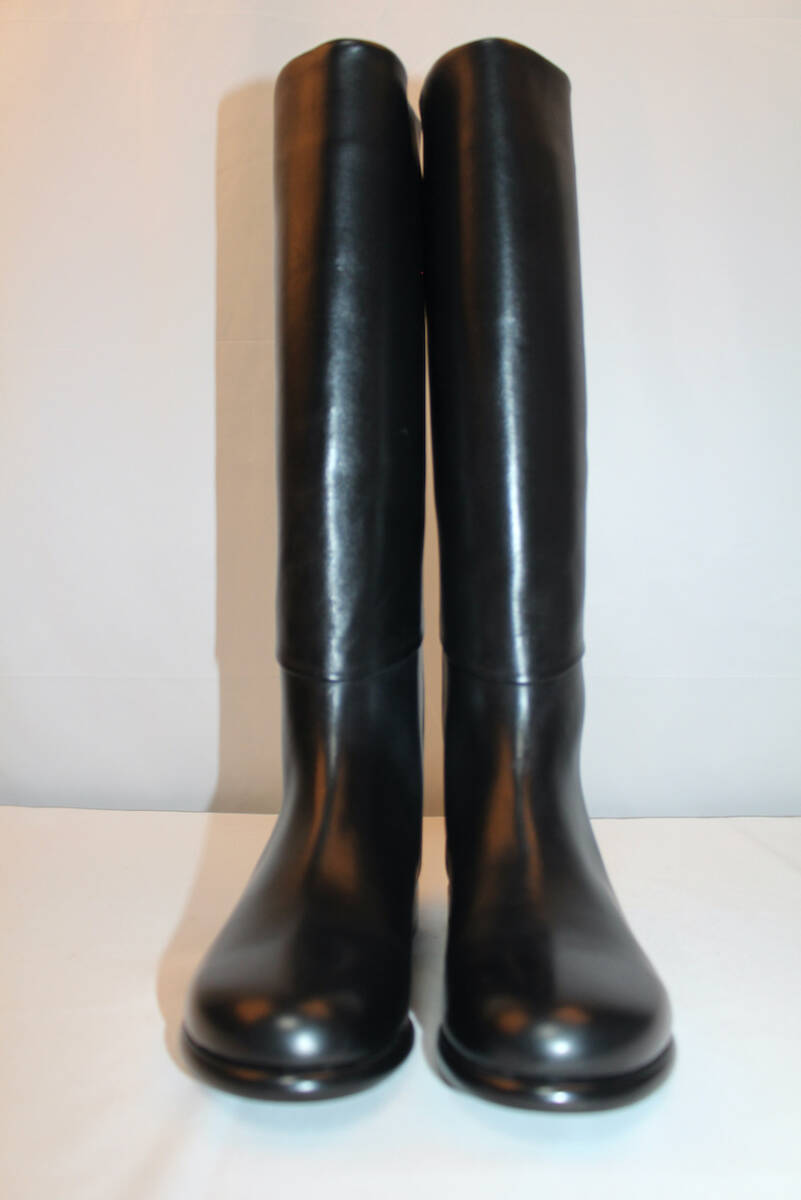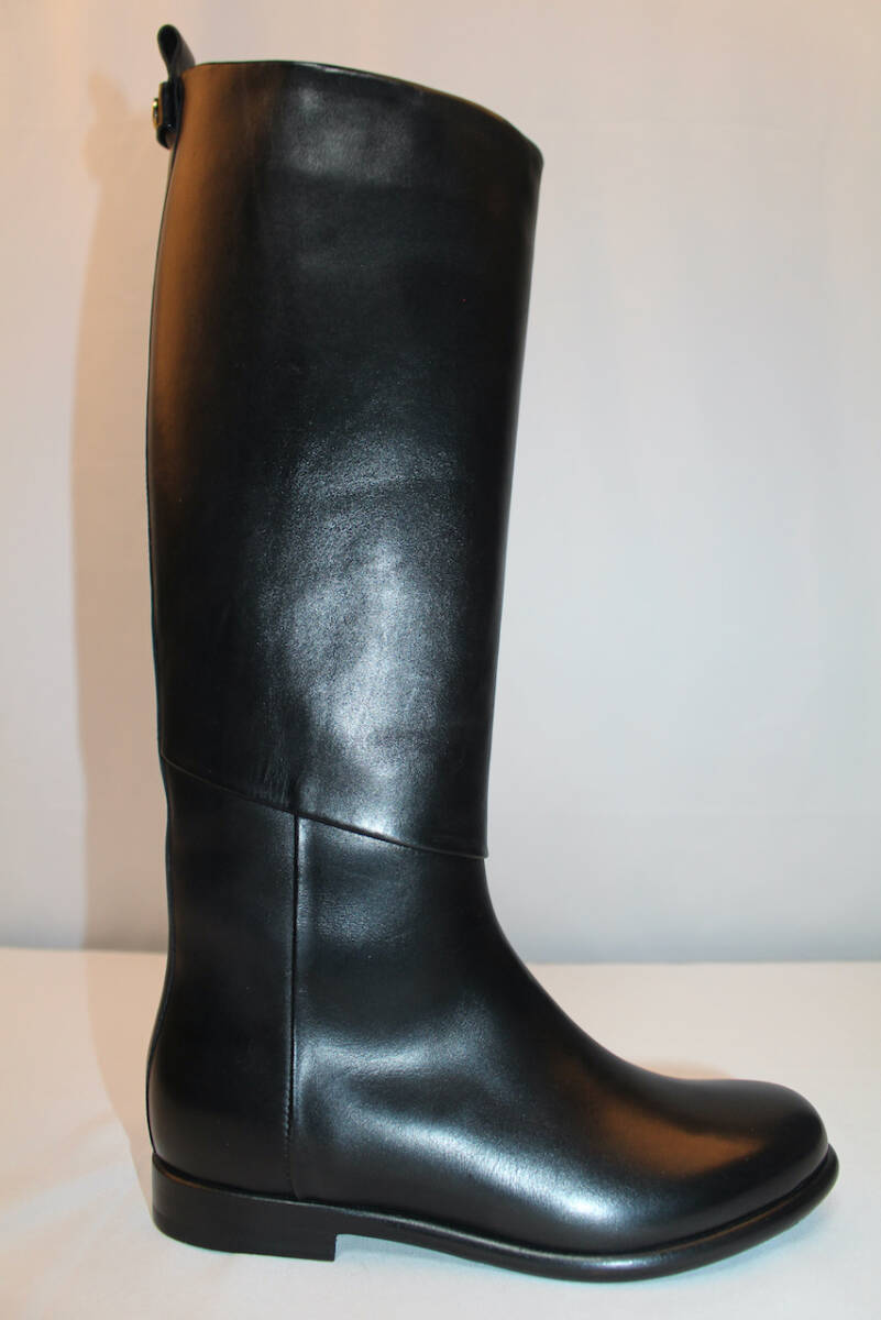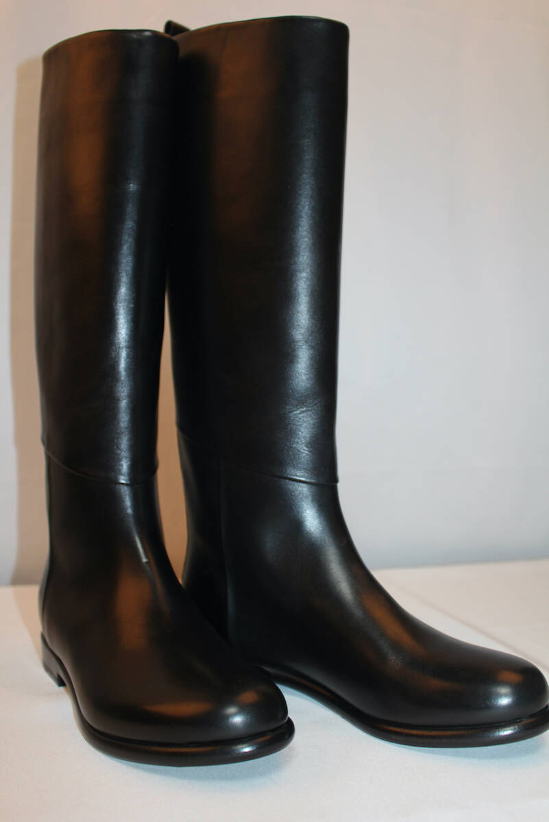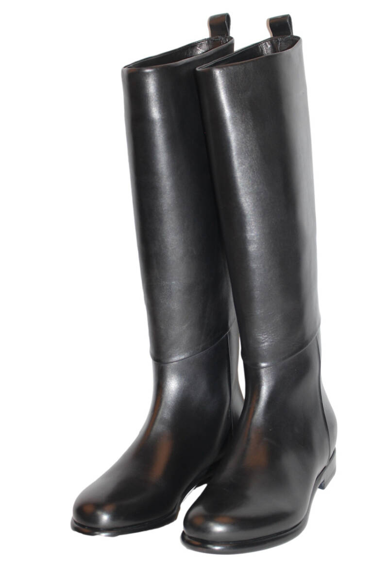 牛革、ブラックカラー、サイズ36、23.5cm相当、ブーツの口幅17cm、ヒールの高さ2.5cm、ブーツの高さ43cm、イタリア製、新品です。