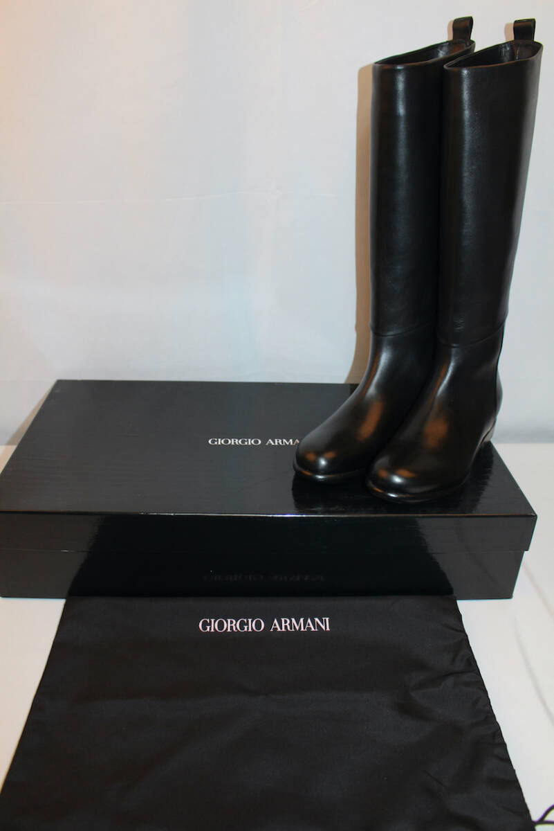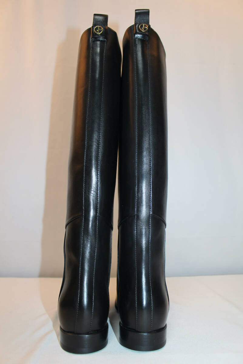 新品GIORGIO ARMANIジョルジオアルマーニ アッパー牛革レディス ロングブーツ size36M/黒 X1O067 XB667  kir