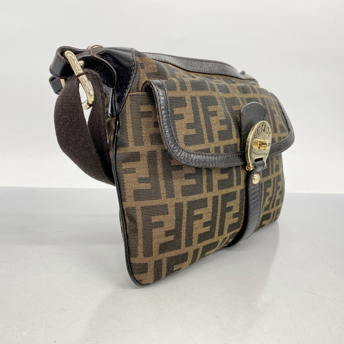★SALE【5mb1411-h】フェンディ ショルダーバッグ ズッカ ナイロンキャンバス ブラウン ゴールド金具【中古】レディース