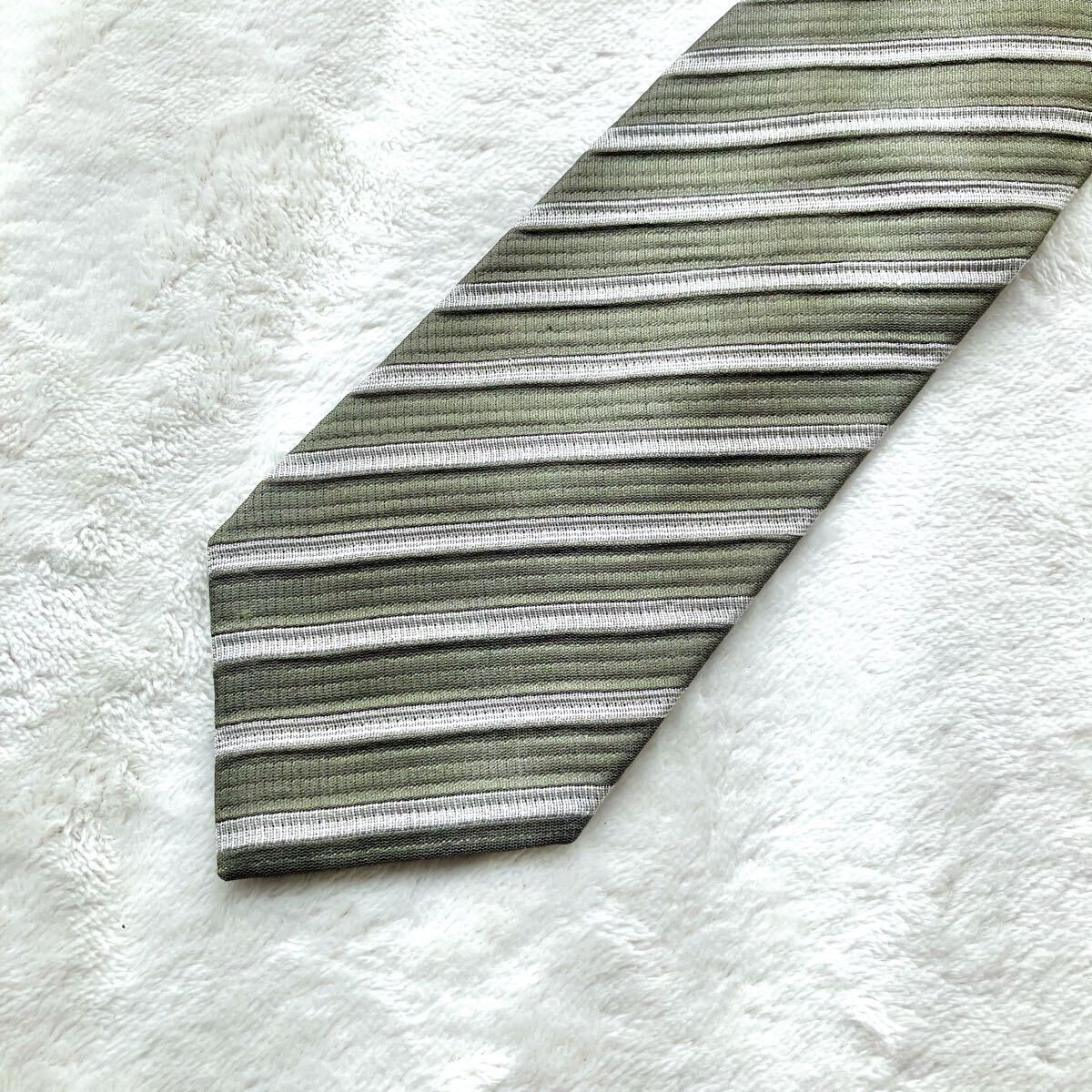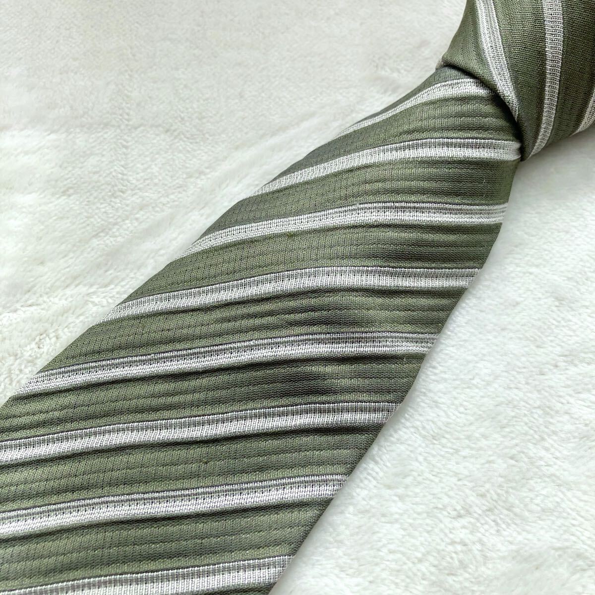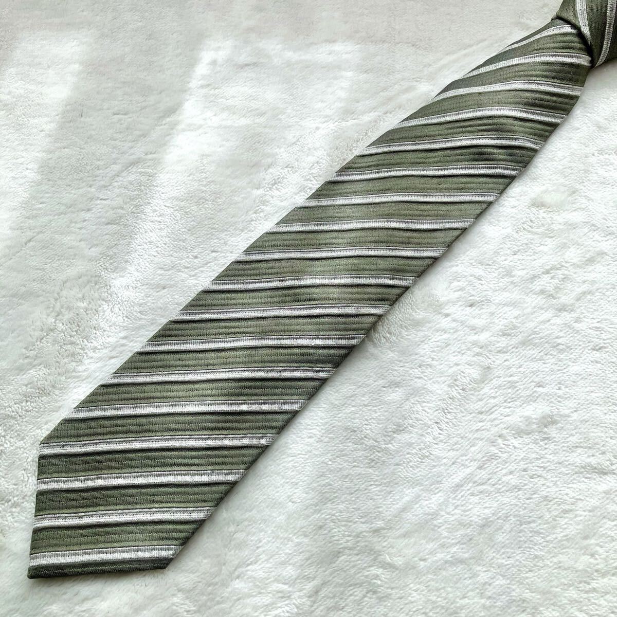 ストライプ柄ネクタイ、落ち着いたグリーンの色合いがフォーマルな場に最適です。