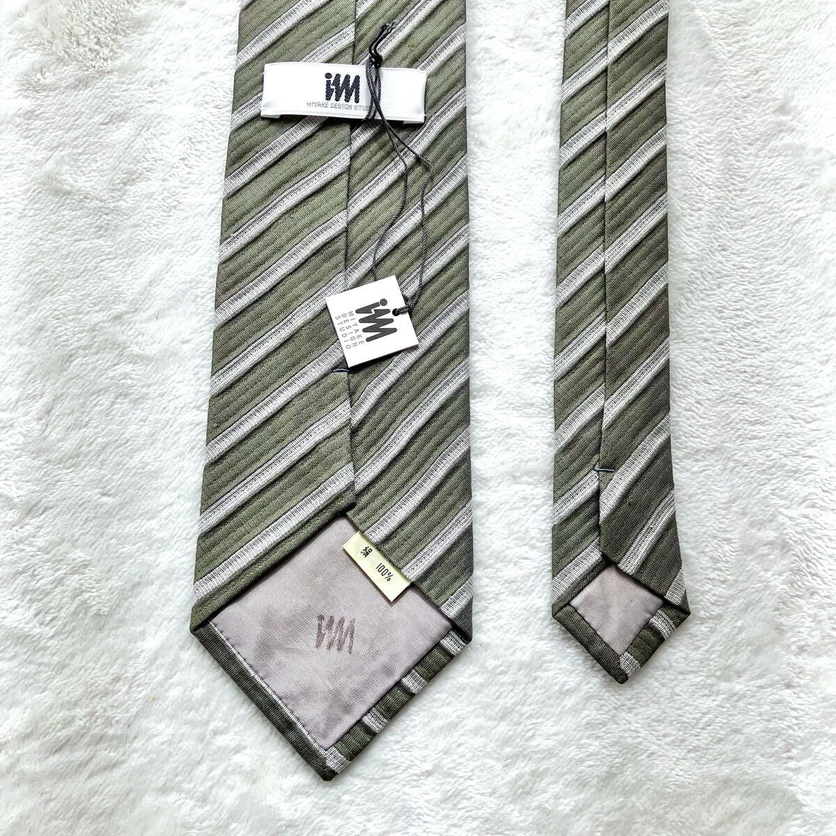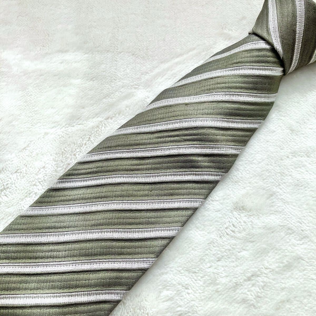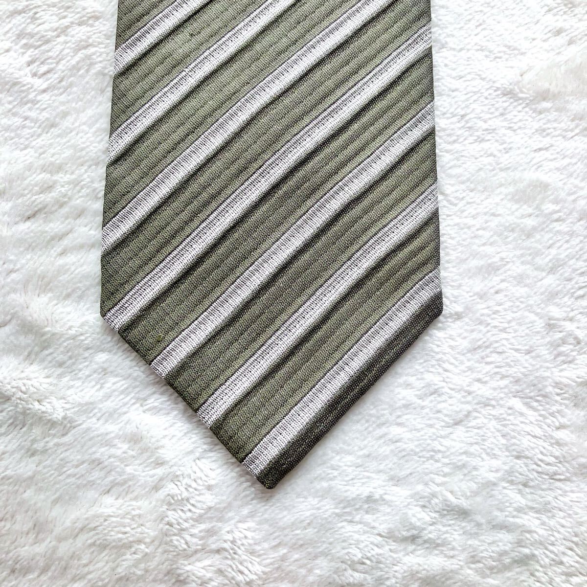 ストライプ柄ネクタイ、落ち着いたグリーンの色合いがフォーマルな場に最適です。