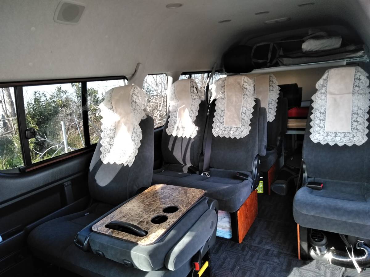 200系ハイエースワゴンワイド全車種 初期型~最終型 テーブル板2枚セット(こげ茶塗装)座席の上に置くだけ。