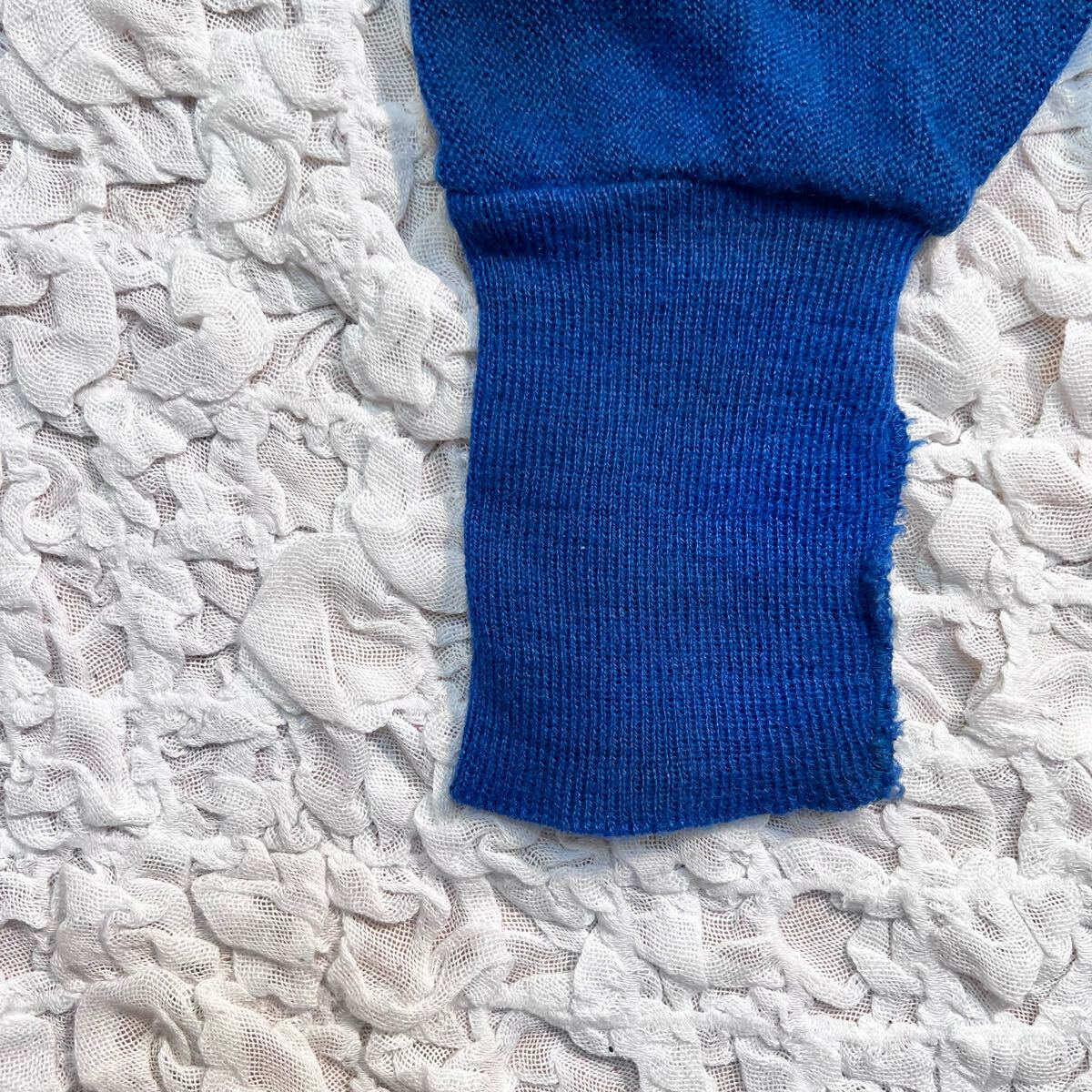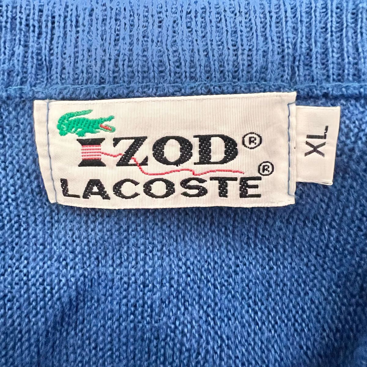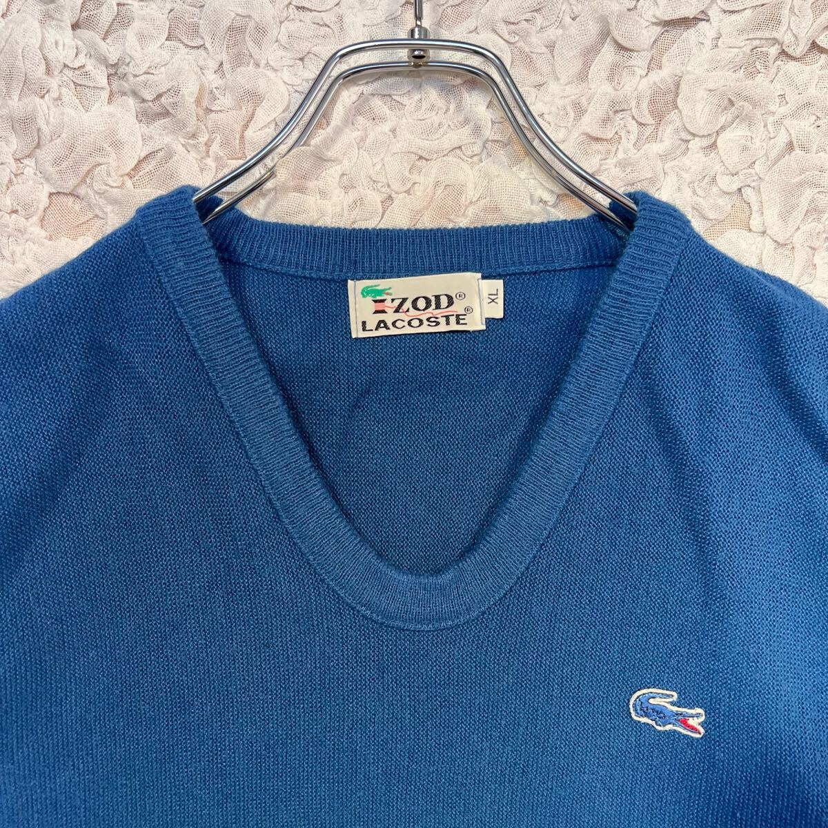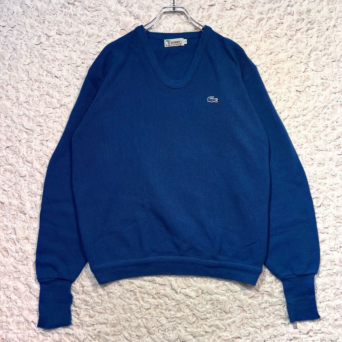 左胸に青ワニの刺繍ロゴがあり、Vネックが深みが