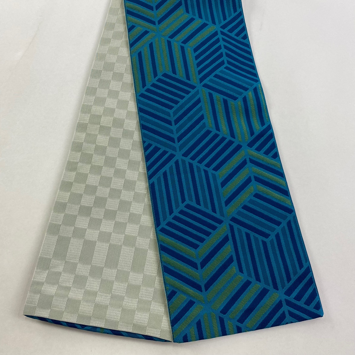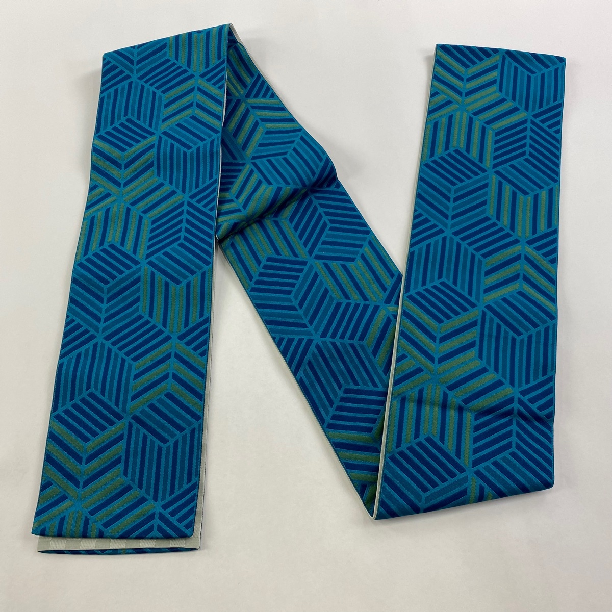 | 半幅帯 美品 優品 幾何学 青緑 化繊 【中古】 |