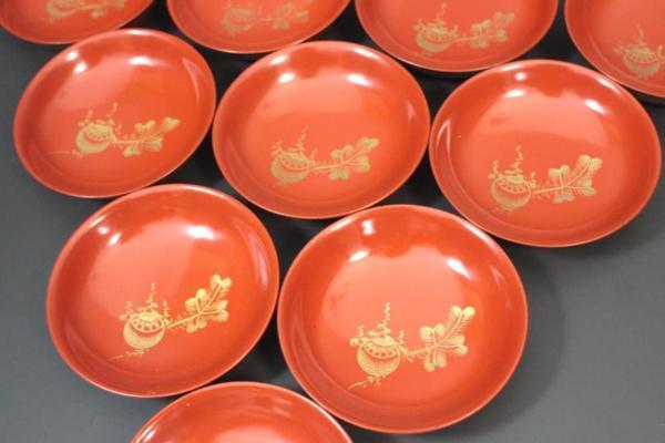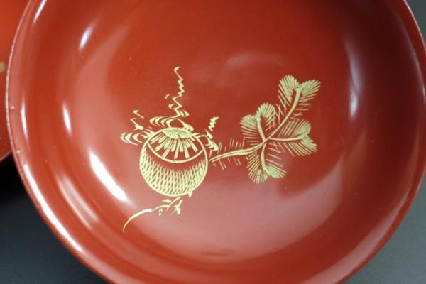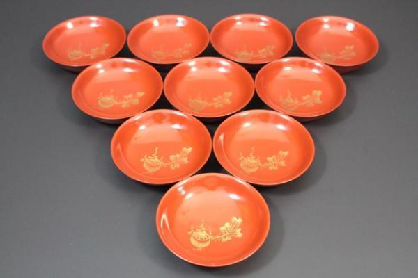 ★★ アンティーク 木製 朱塗り 若松に宝珠 木皿 ★★