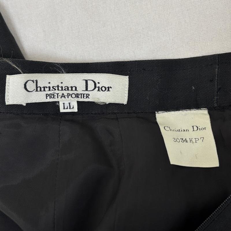 クリスチャンディオール ビッグサイズ リネン 麻 バックファスナー ミニ スカート 黒 ブラック LL