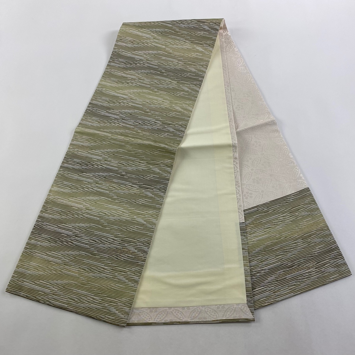 | 開き名古屋帯 美品 秀品 霞 金彩 灰緑 正絹 【中古】 |