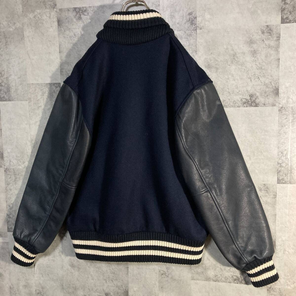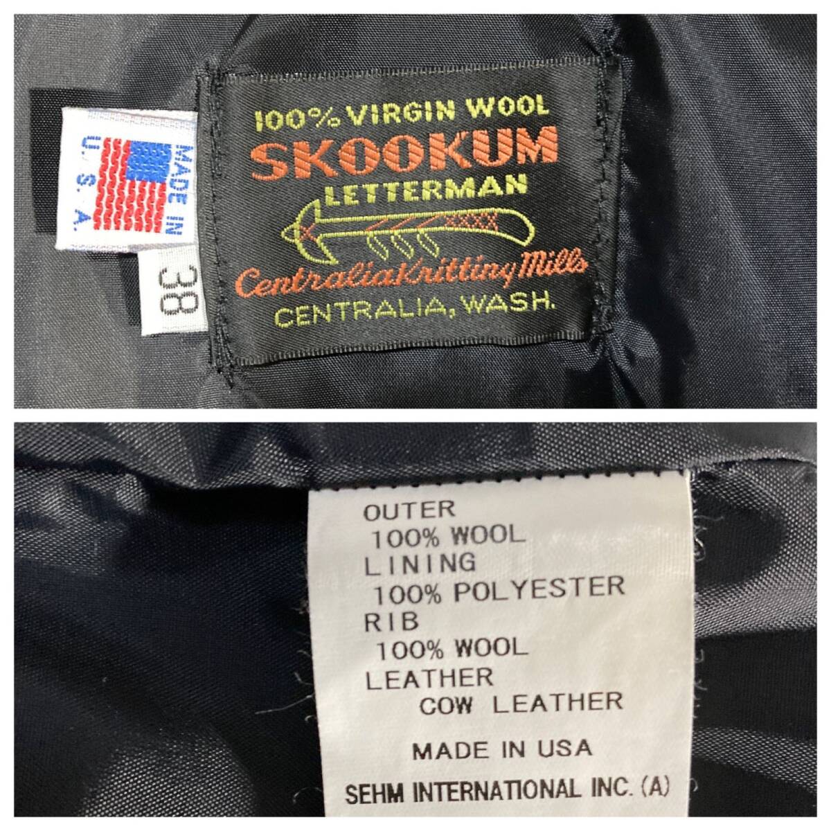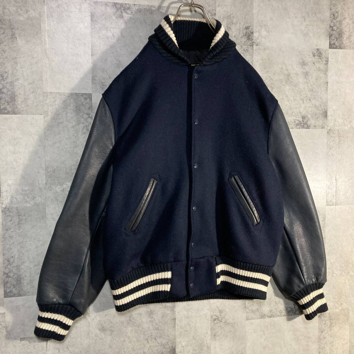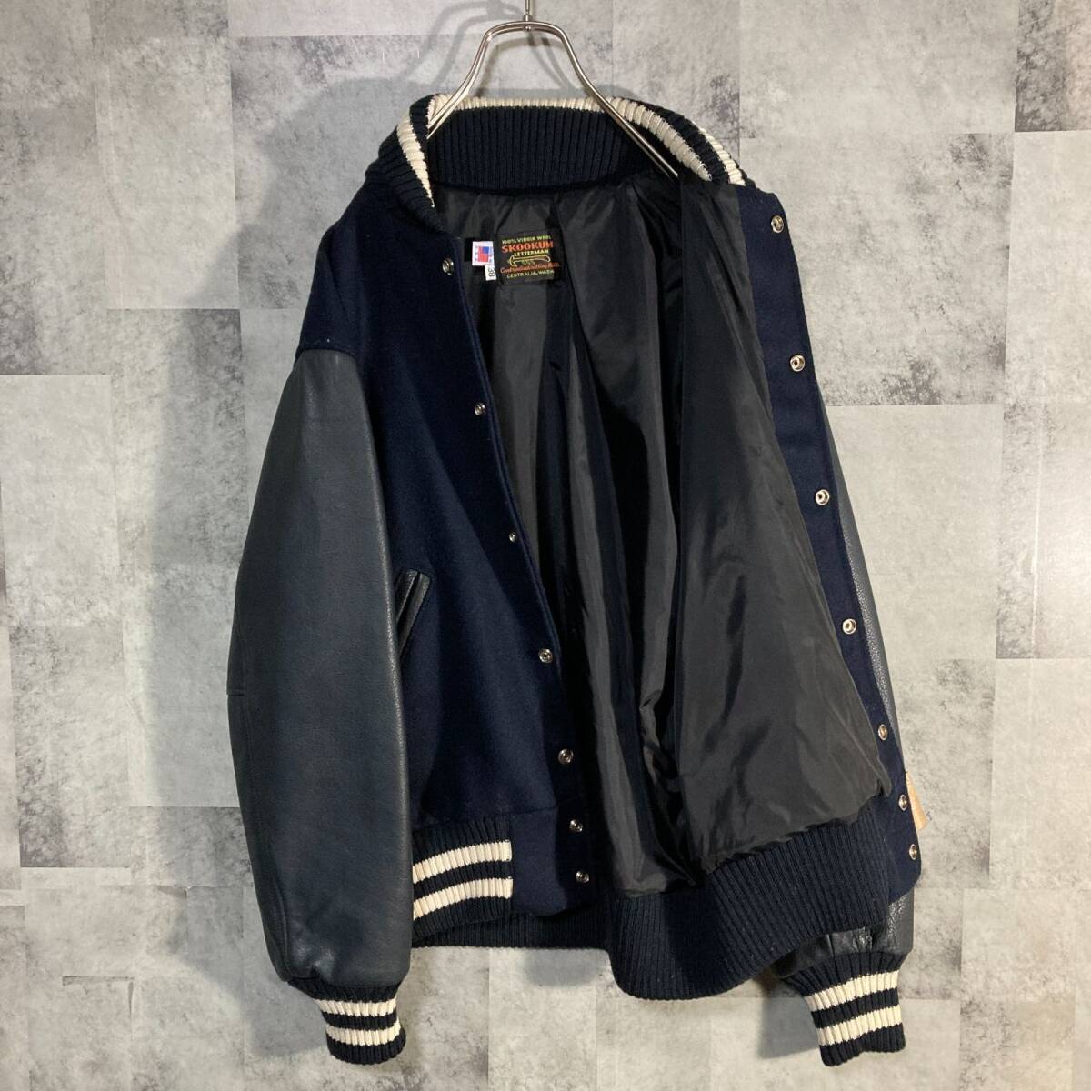 USA製 SKOOKUM スクーカム アワードジャケット 袖レザースタジャン ネイビー 38