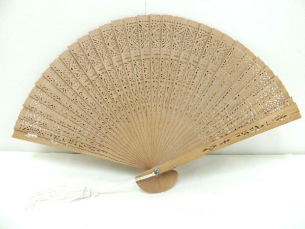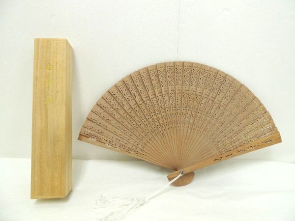 【美品】白檀扇子 香木 透かし彫り 専用化粧箱付き/60サイズ