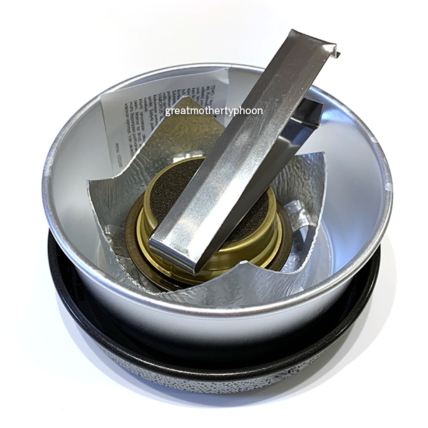 収納サイズ:直径15×高さ7cm、重量約350g、ソースパン(容量800ml、アルミ製、無垢、無加工)、フライパン(直径15cm、アルミ製、ノンスティック加工済)、アルコールバーナーTR-B25、専用五徳TR-281、ミニハンドル(ステンレス製)がついています。商品は新品です。