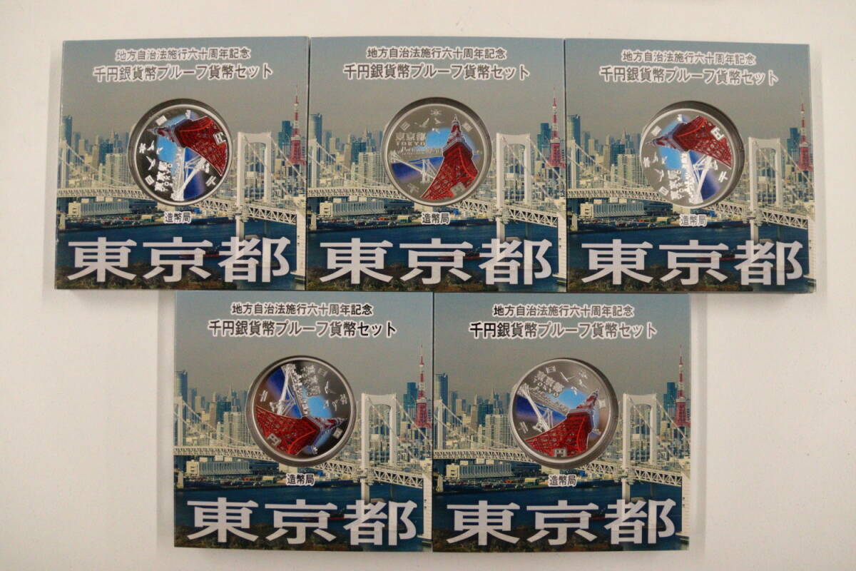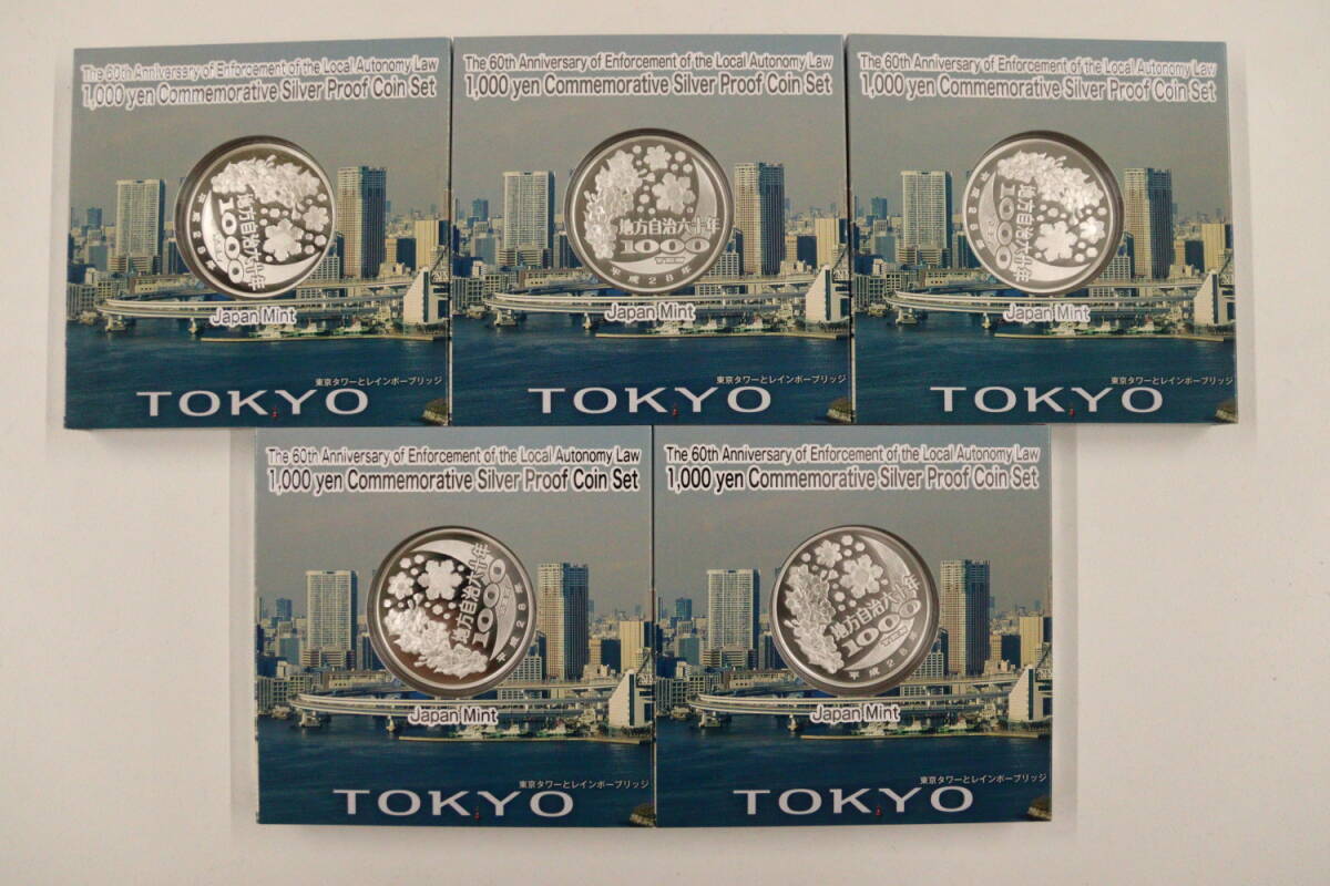 品名:地方自治法施行60周年記念 1000円銀貨 東京都 5個 まとめて おまとめ 記念銀貨 銀貨 古銭 硬貨