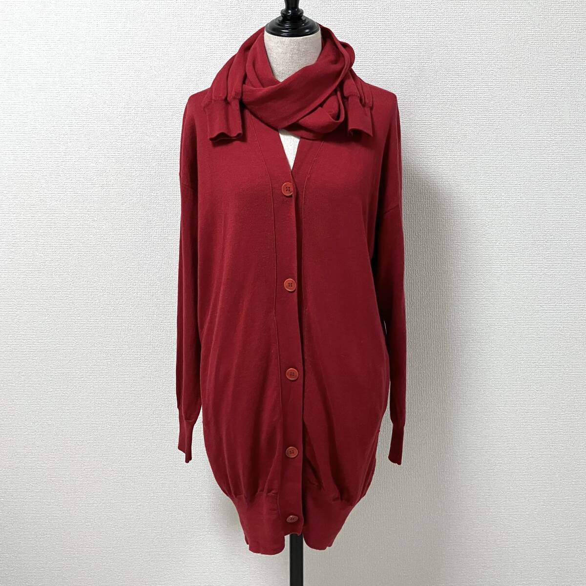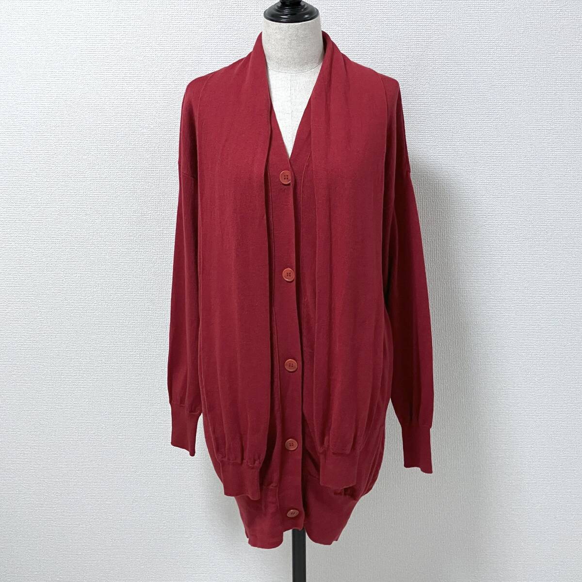 MM6 Maison Margiela 6 ストール ドッキング ウール ニット ロング丈 カーディガン  レッド